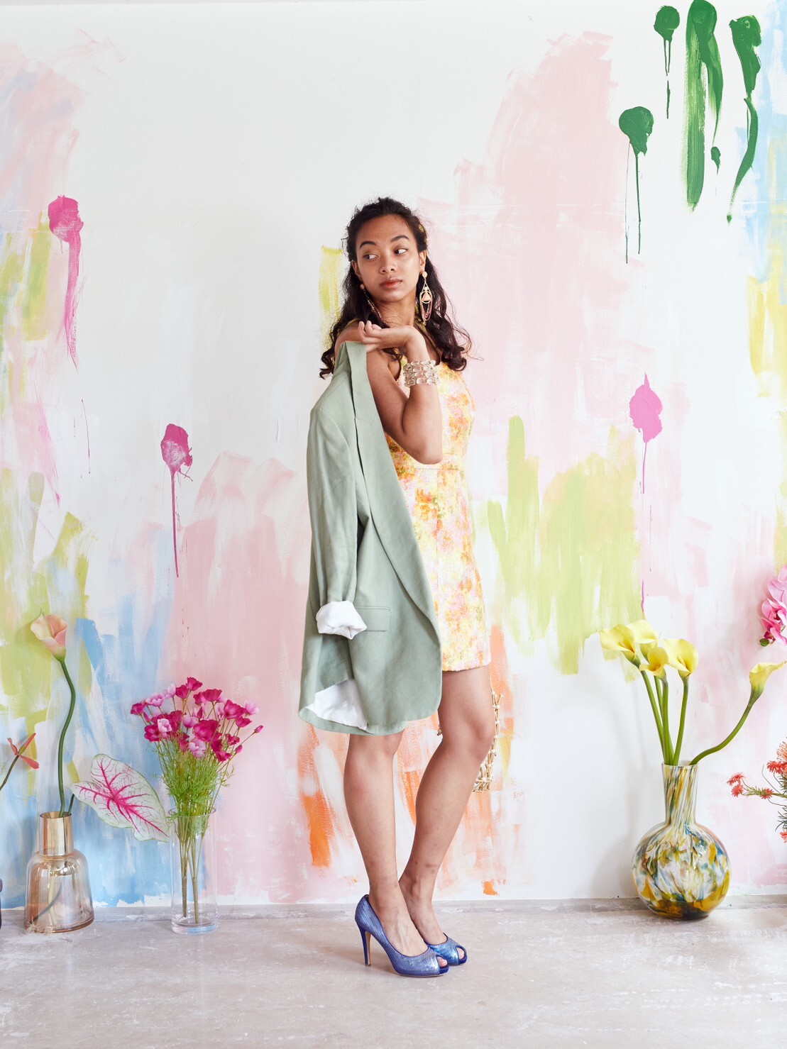 海外セレブにも愛用者の多いfreepeople。『周りと被りたくない!』『人より少し個性的なデザインが好き!』そんな方におすすめしたいドレス。ニュアンスのあるくすみカラーのエンボス加工生地が目を惹く、インパクト大のデザイン。程よい華やかさはありつつも全体のカラーやシルエットはやりすぎ感がなく、決して”奇抜”ではない”一味違う”雰囲気の個性派。華やかさが出る生地といえばレースが主流ですがジャガード生地もイチオシです。ご利用シーンに合わせて羽織やパールなどのアクセサリーを足せば、結婚式からカジュアルなパーティーまで大活躍。小物はやりすぎずポイントを絞るとこなれ感も狙えます。購入するとなると定番カラーになりがち。レンタルだから手を出せるコーディネートはいかがですか?