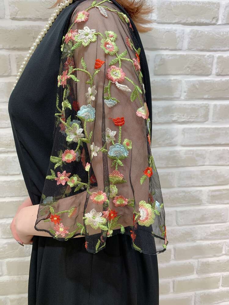 【ゲストドレス】ブラック フラワースリーブ L〜