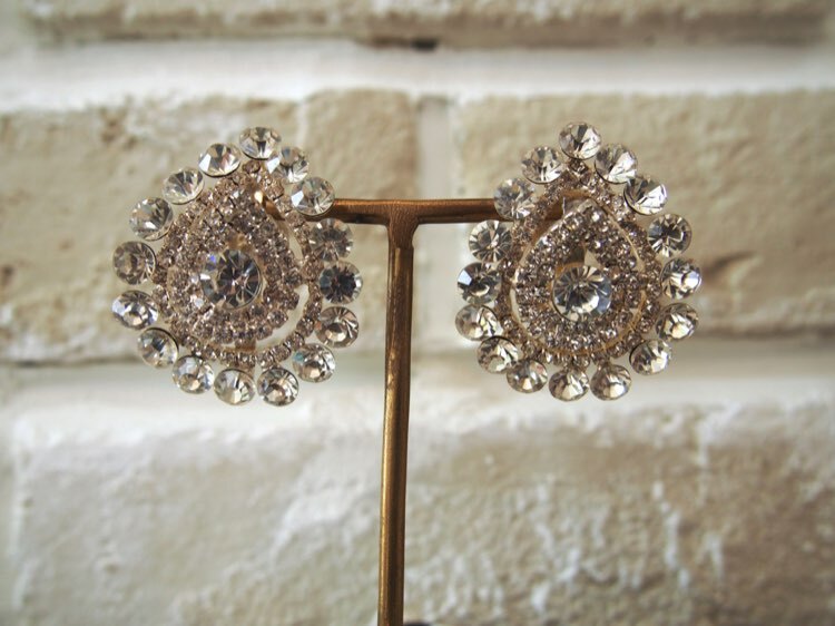 ティアドロップデザインに、びっしり詰め込まれた大小様々なラインストーンがどの角度から見てもキラキラと輝きを放ってくれるシルバーBIGイヤリング。耳が半分以上隠れるほどの大きさですので、華やかなパーティーや花嫁さん・コンテスト等に是非!主役感満載+このサイズ感。小柄な方・お顔の小さい方は少しバランスが悪く見えてしまう場合もございますのでご注意下さい。耳たぶにピタッとフィットするデザインは、ヘアスタイルも選ばずダウンスタイル・アップスタイルどちらでも甘くなりすぎることがなくスタイリッシュに決まります!シルバーカラーは顔映りが良く明るい印象になりますので、写真を多く撮る際は是非おススメです!!