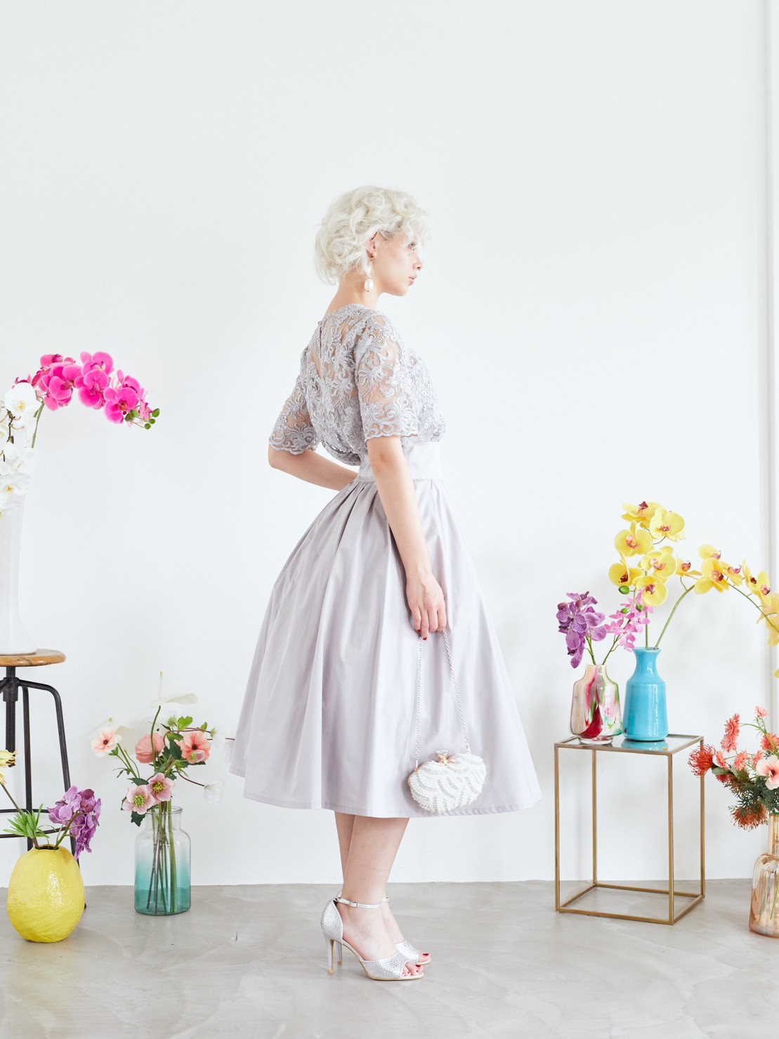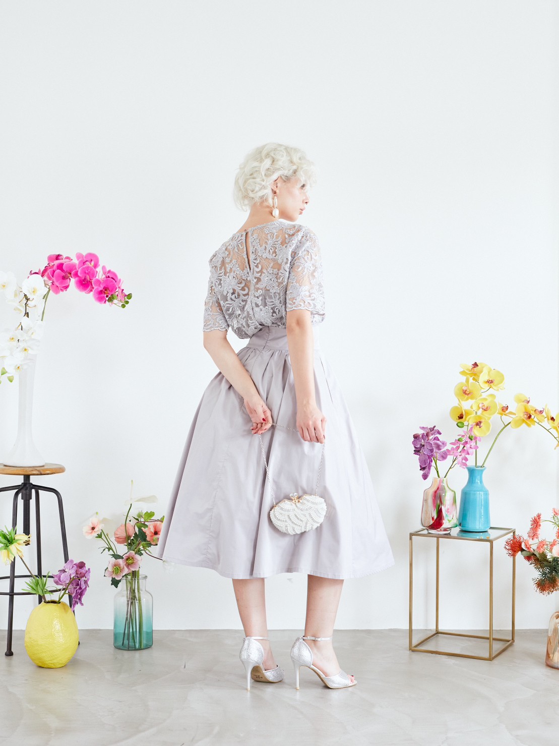 【ゲストドレス】アイスグレーレース ミモレ丈