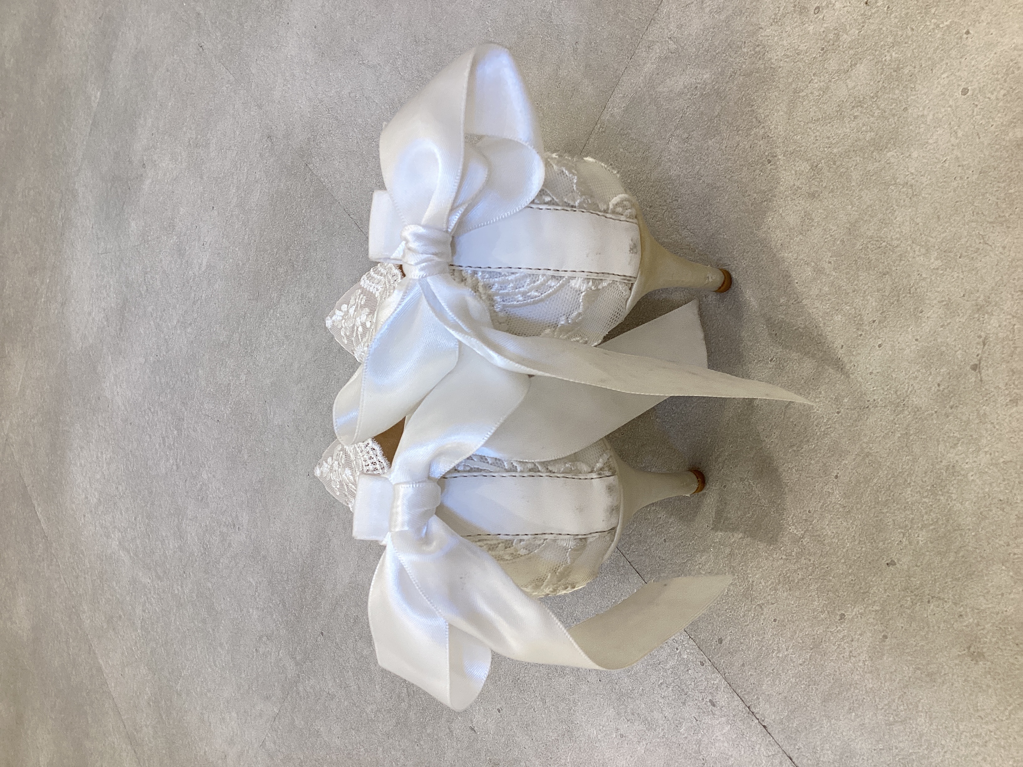 【パンプス】ホワイトレースリボン付パンプス 24cm ヒール7cm