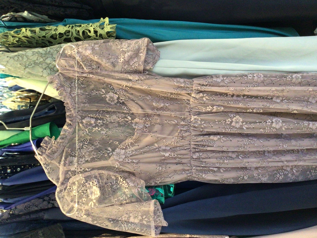 【ゲストドレス】モーヴピンク 総レース 五分丈スリーブ M