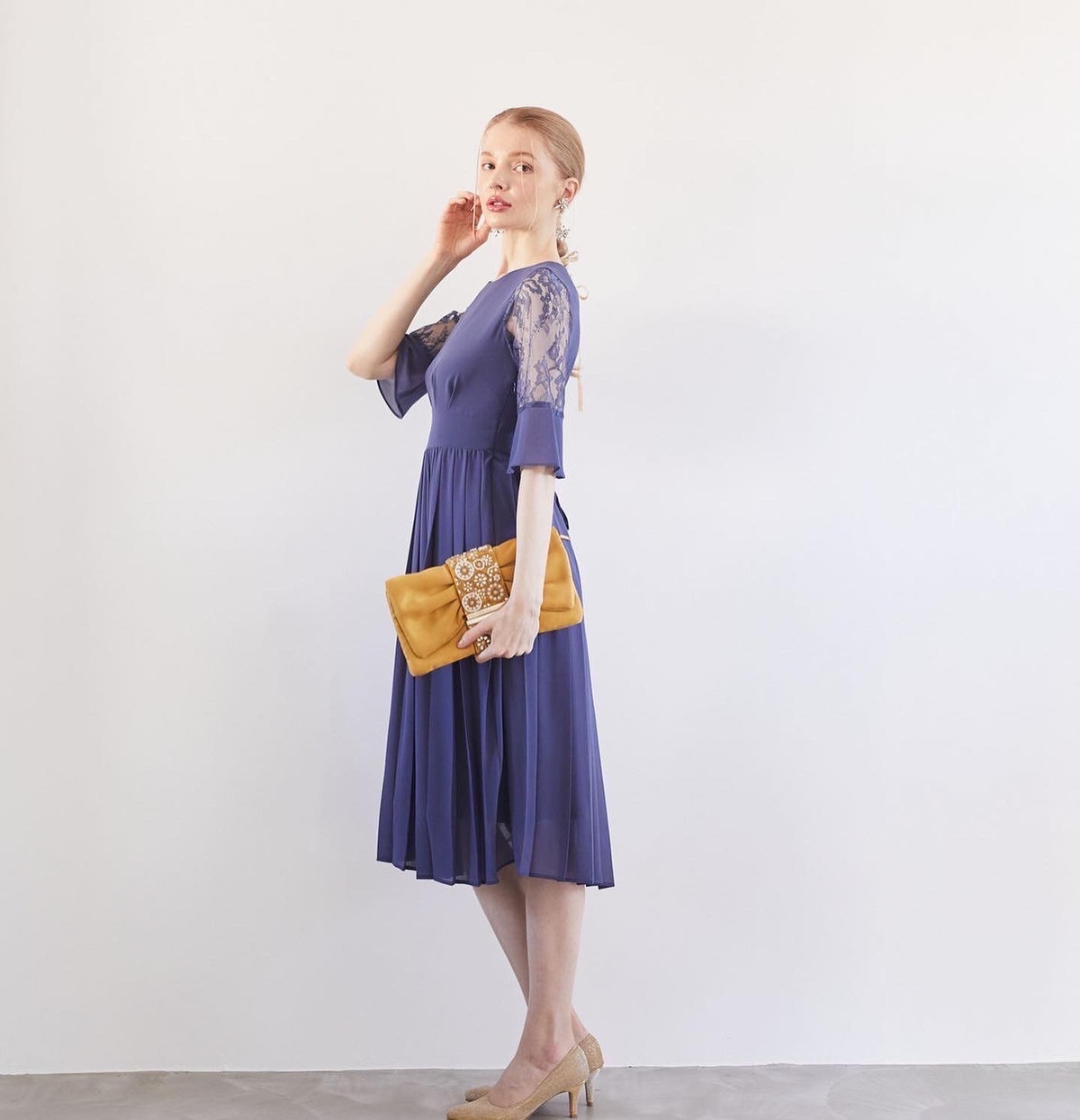 ブルー プリーツドレス ゲストドレス レンタル 東京 安い