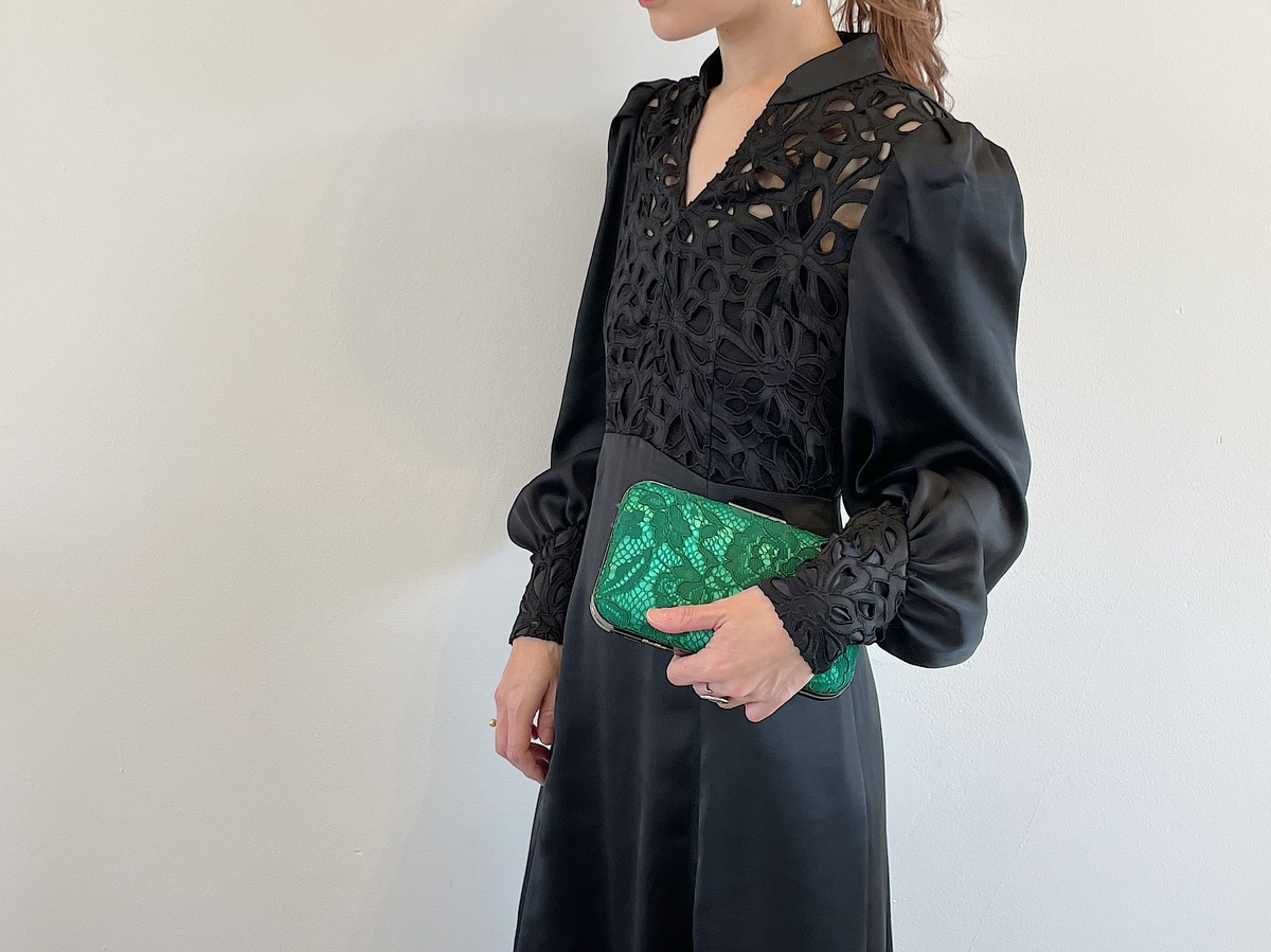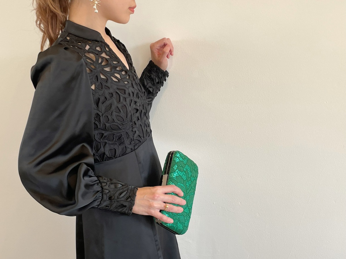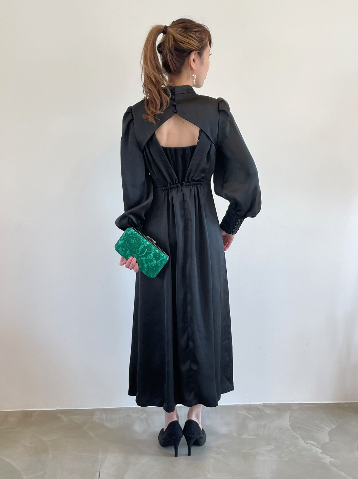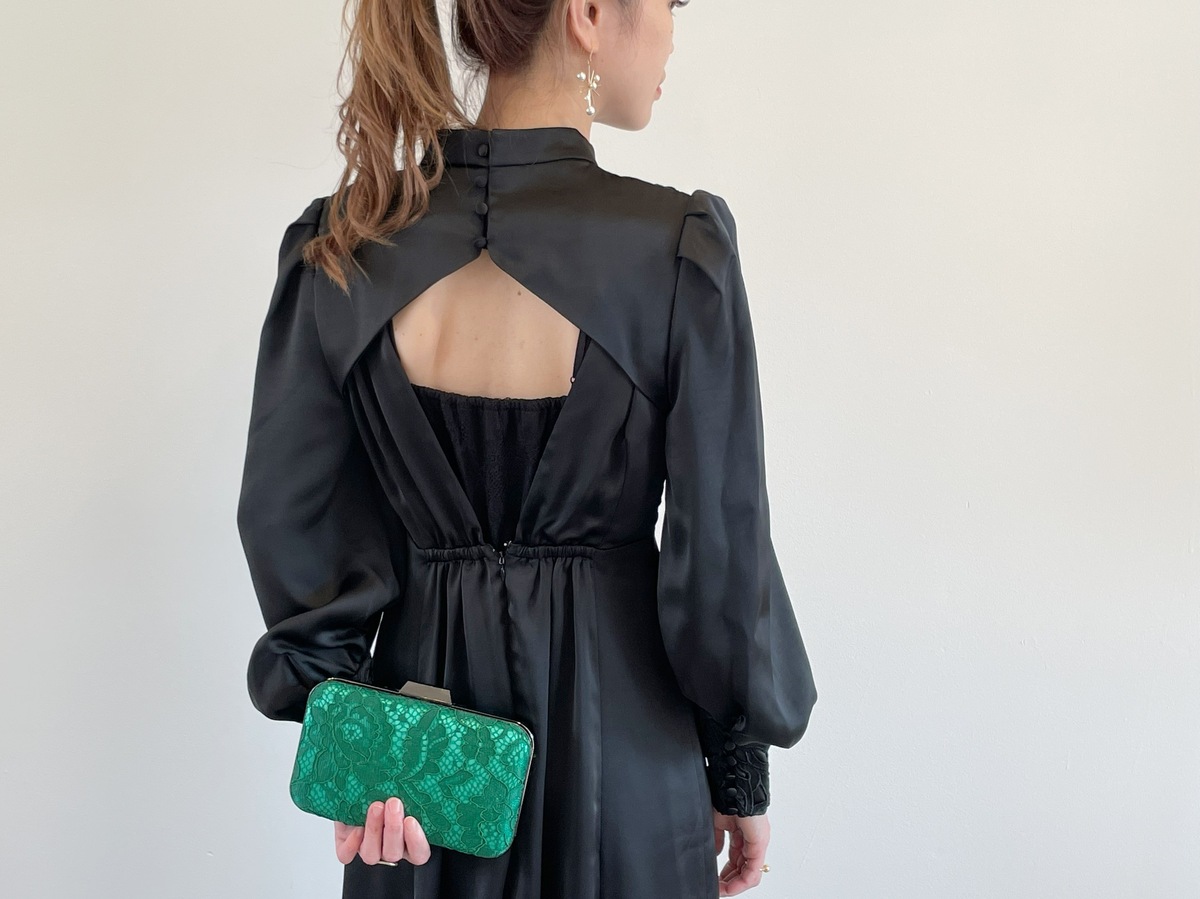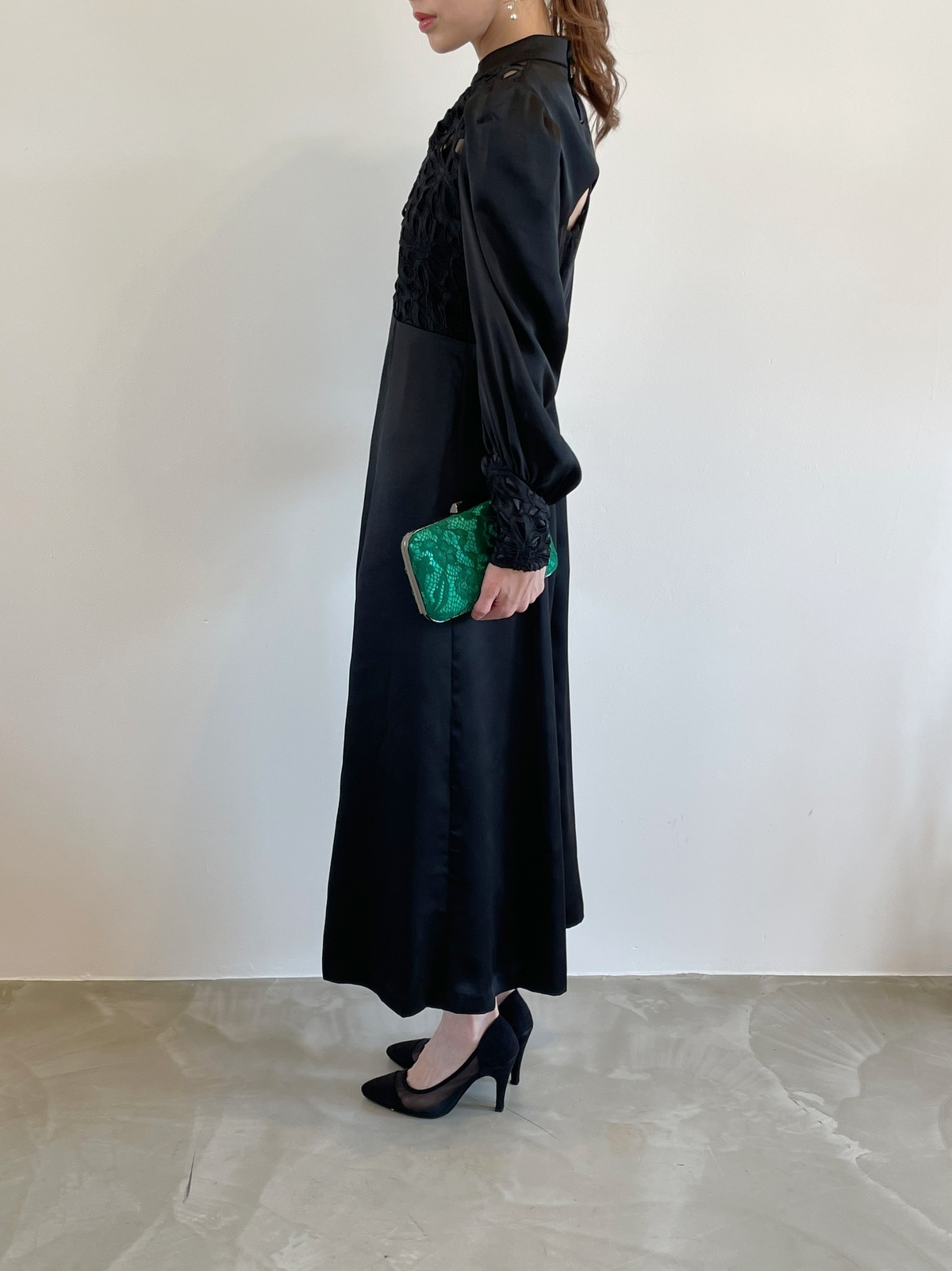 ブラックドレス サテン 上品 長袖 綺麗め レンタルドレス 東京