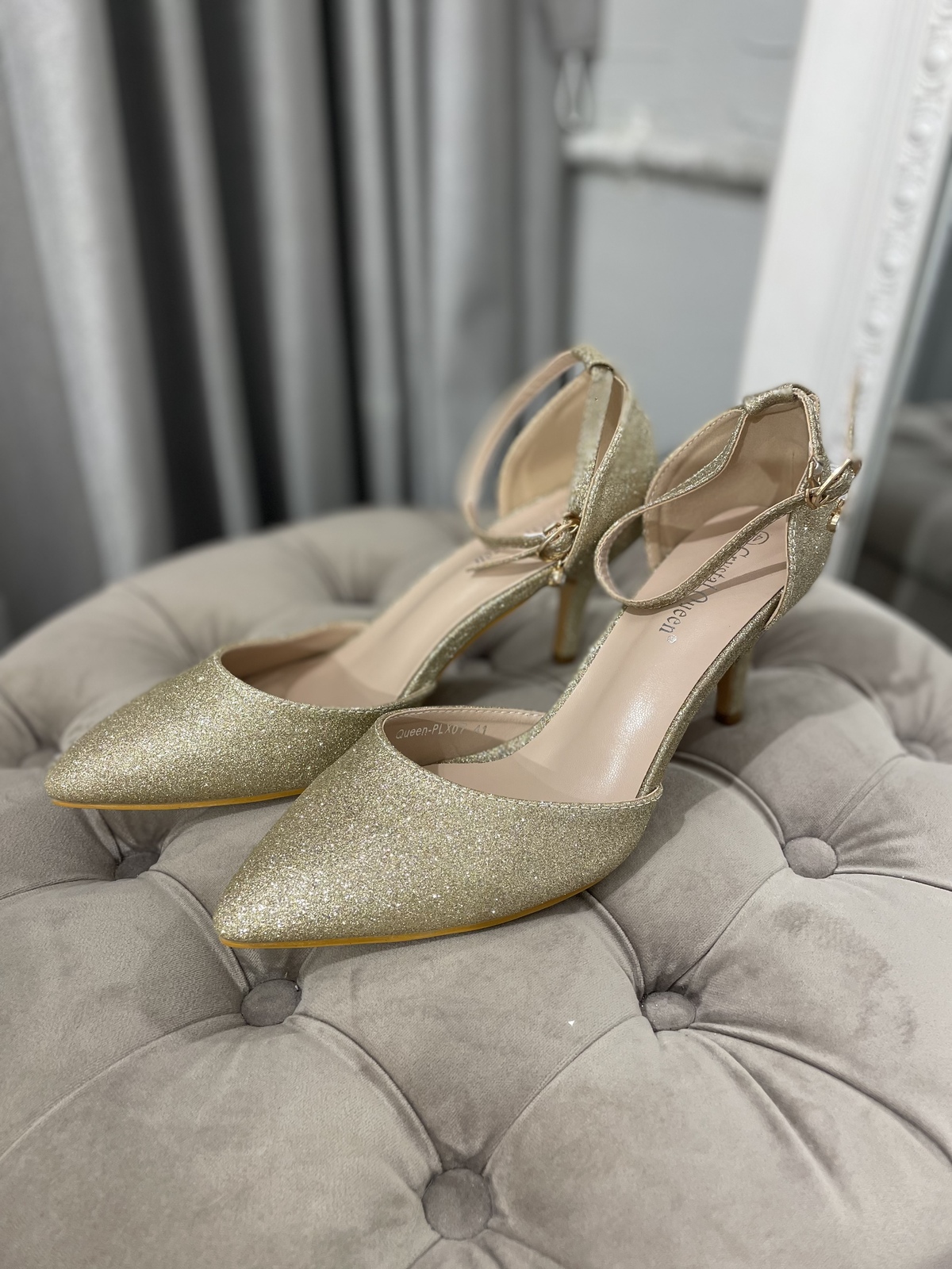 ゴールドラメグリッター ストラップパンプス 上品 パーティー