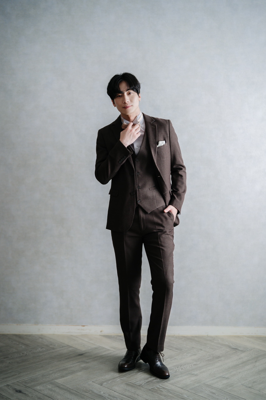 深みのあるブラウンに光沢を抑えた落ち着いた色合いは、新郎としての特別感を演出するのはもちろん、ゲスト用としても着こなしやすいのが魅力です。ジャケット・ベスト・パンツを揃えたフォーマルなセットアップで、披露宴や二次会でも活躍。シンプルでクラシックなシルエットは写真映えし、幅広いシーンに対応できる一着。華やかさと上品さを兼ね備えたフォーマルスーツをお探しの方におすすめです。