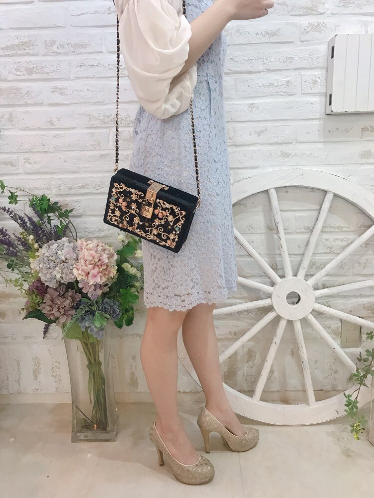 ロマンティック系クラッチバッグ ベロア素材が可愛い パーティーに