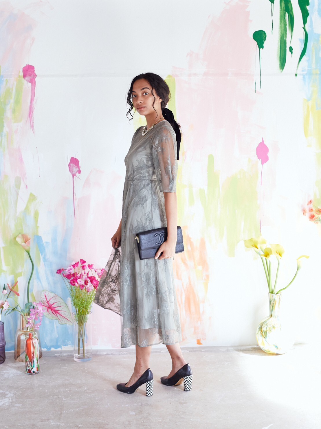 【ゲストドレス】モスグリーン バックダブルリボン L