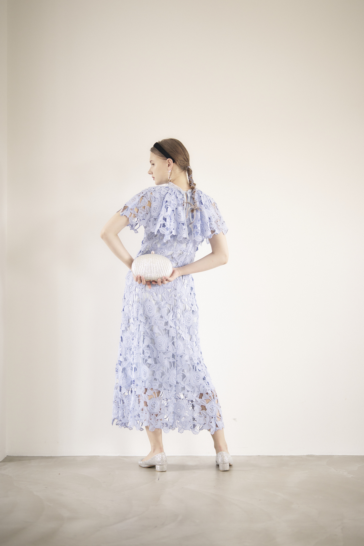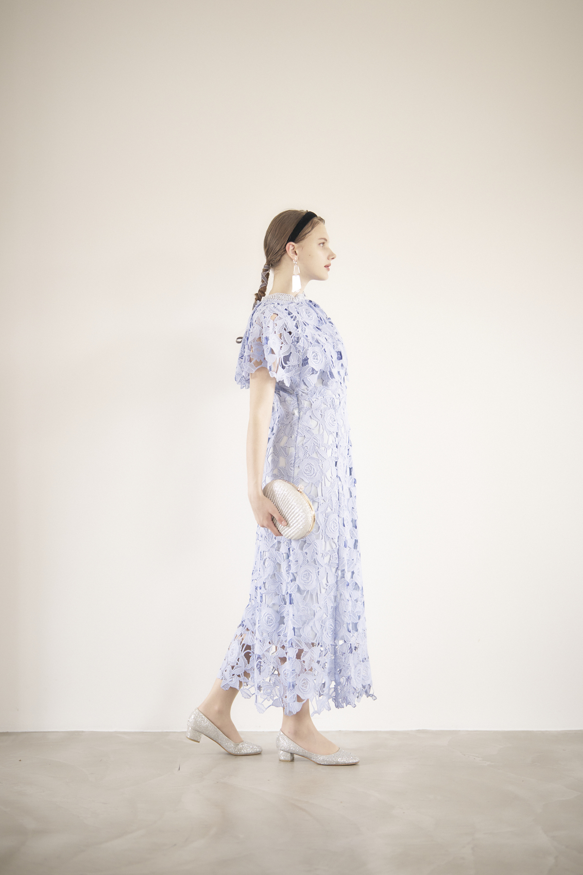 ライトブルー ローズレース 総レース レンタル ゲストドレス