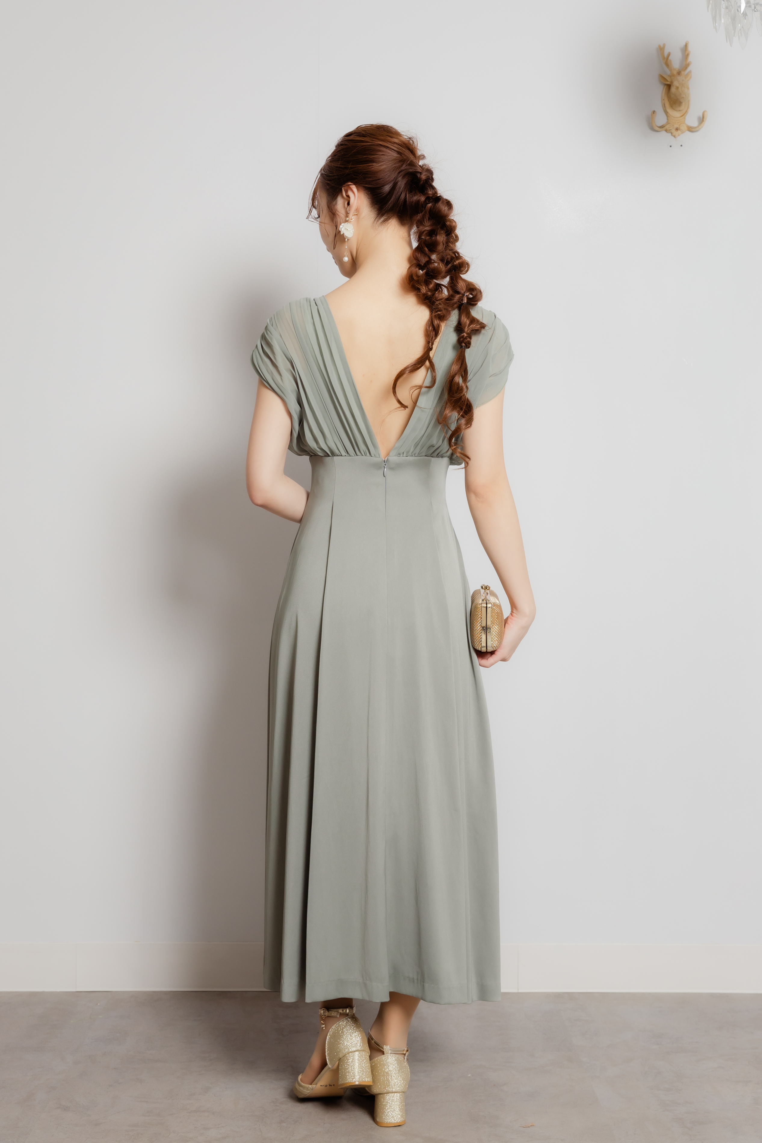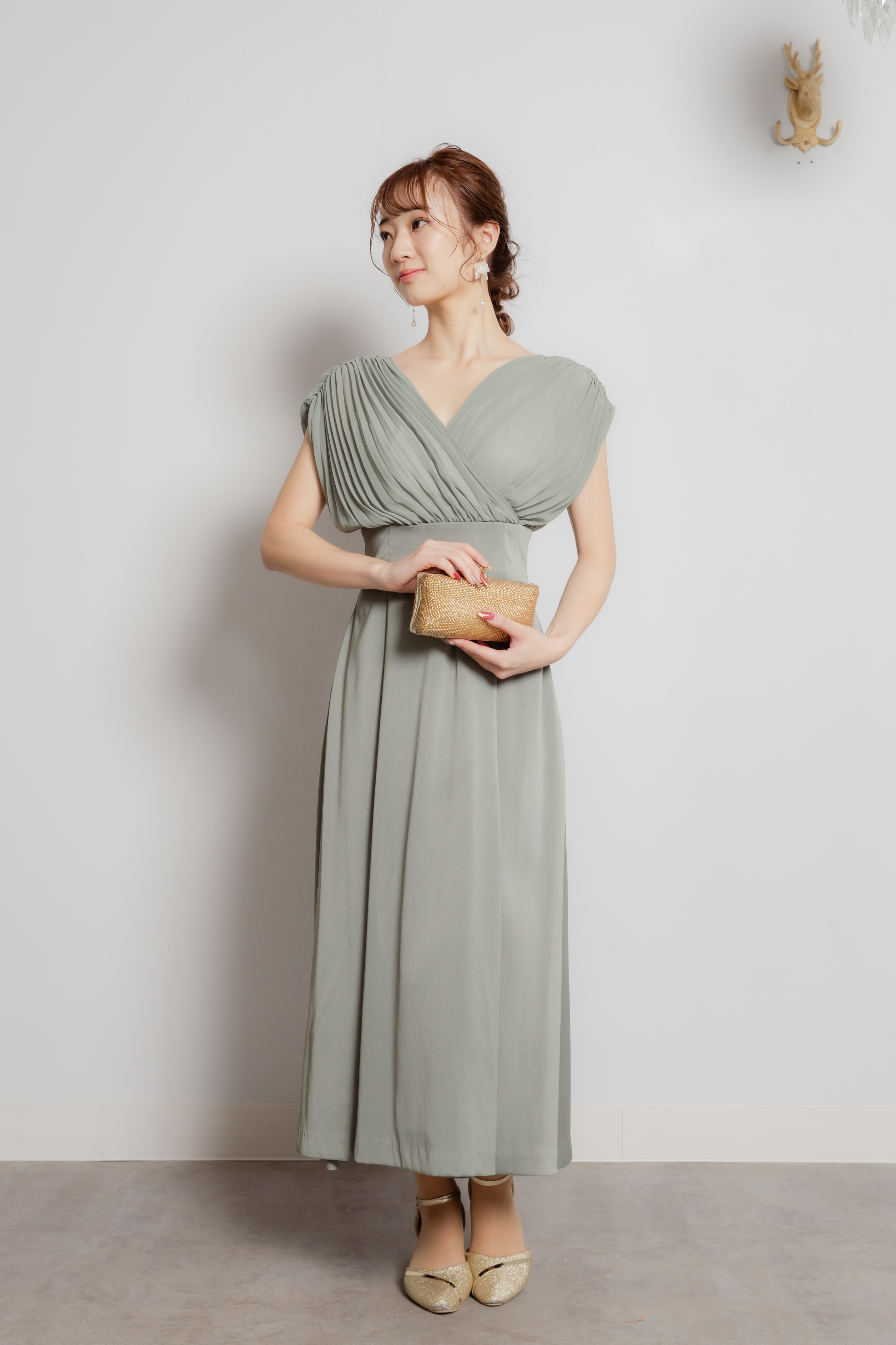シアーな素材にプリーツ加工を施したカシュクールドレス。