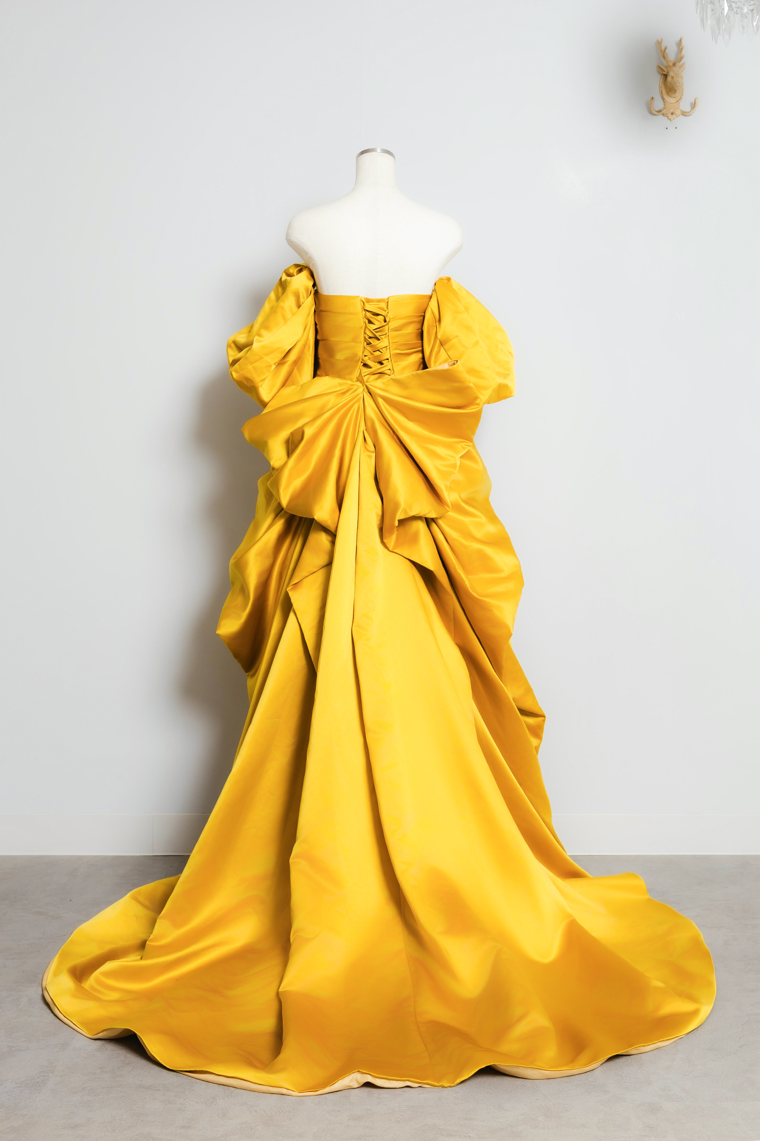 ゴールドがかった深みのあるマスタードカラーが、クラシカルでありながら洗練された印象を与えます。