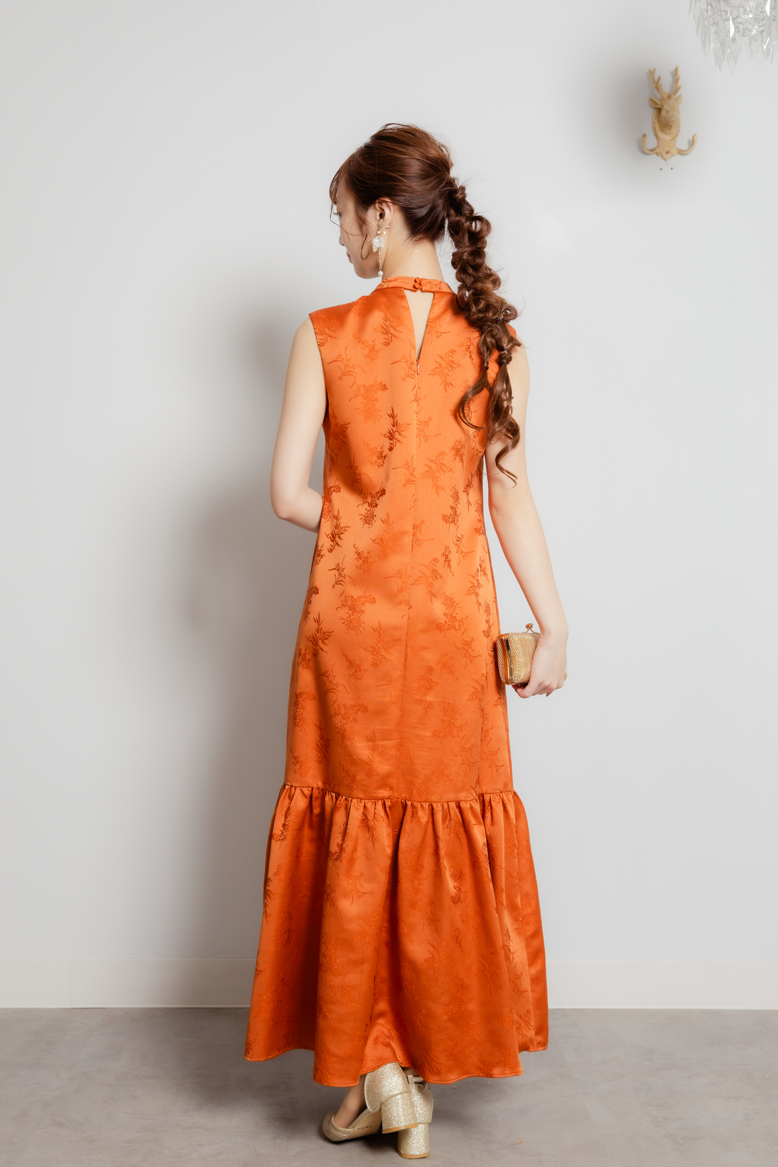 チャイナ風ティアードヘムジャガードドレス オレンジM