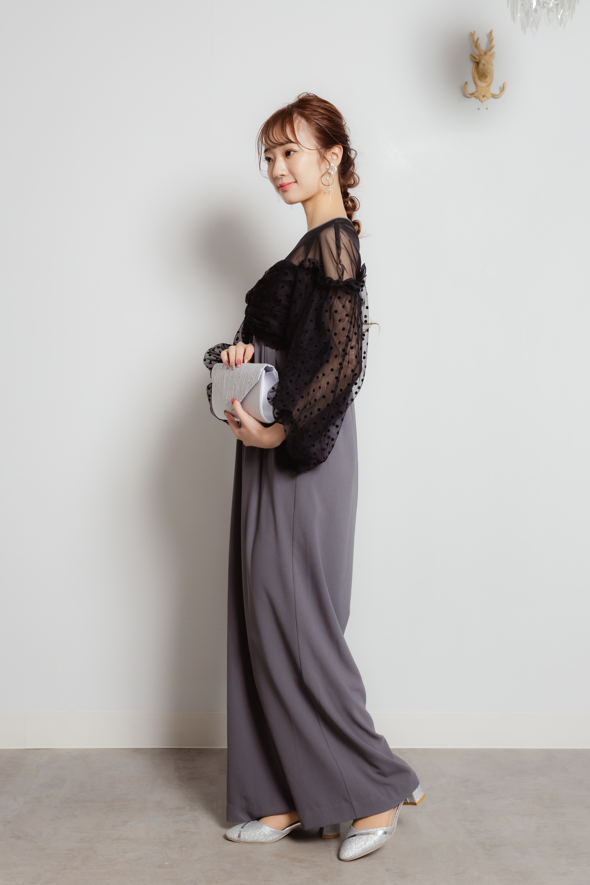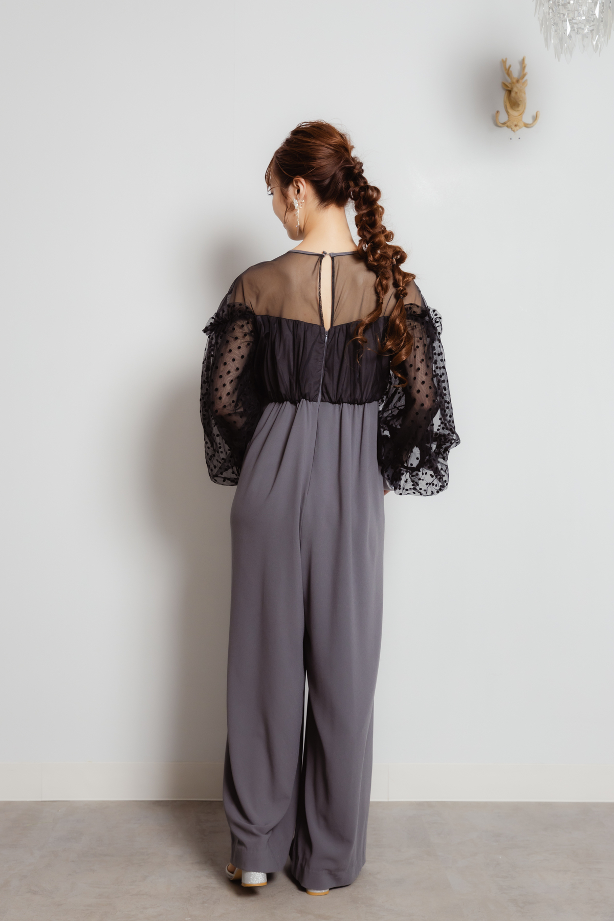 フロッキードットチュールパンツドレス グレー M