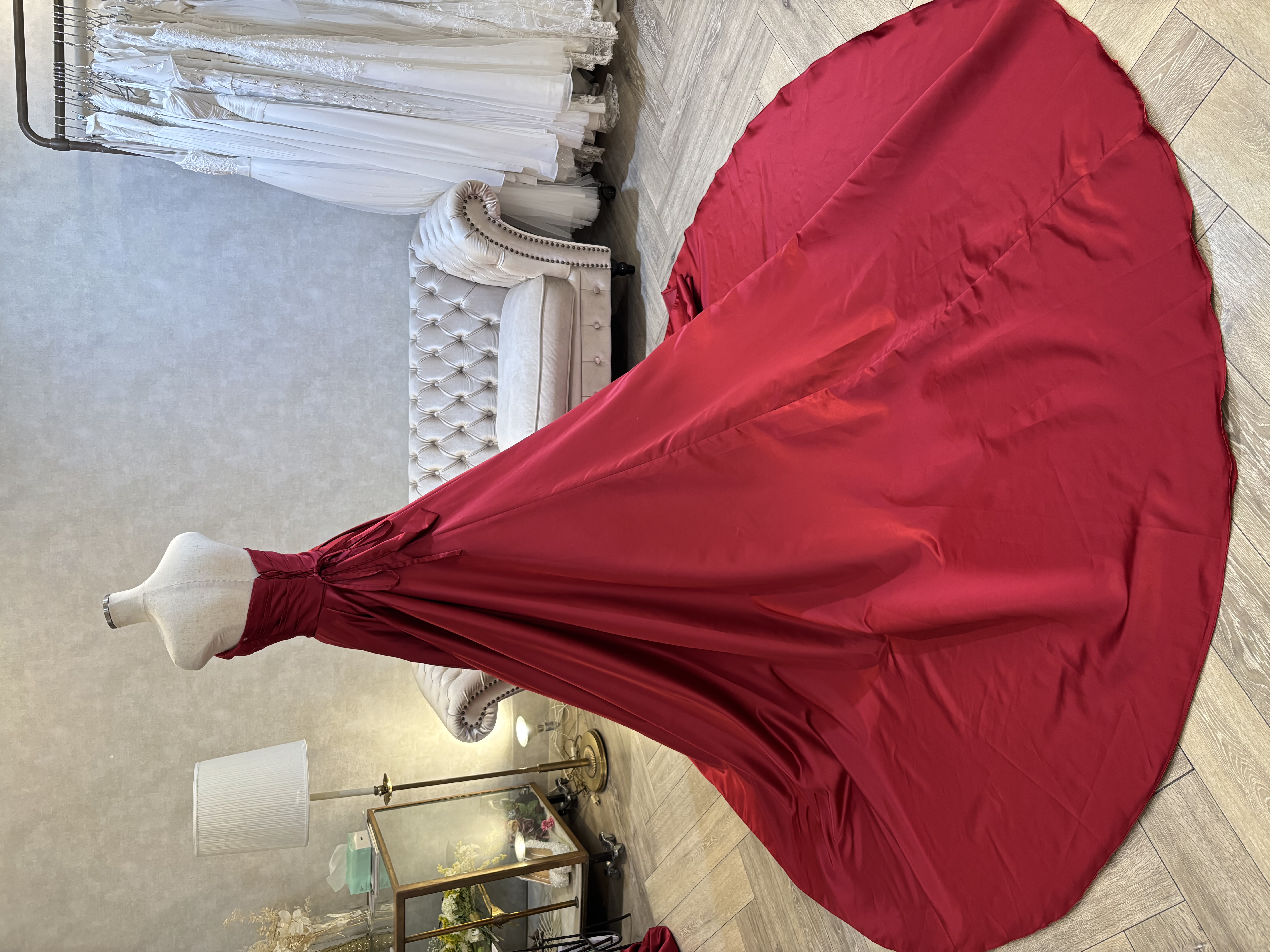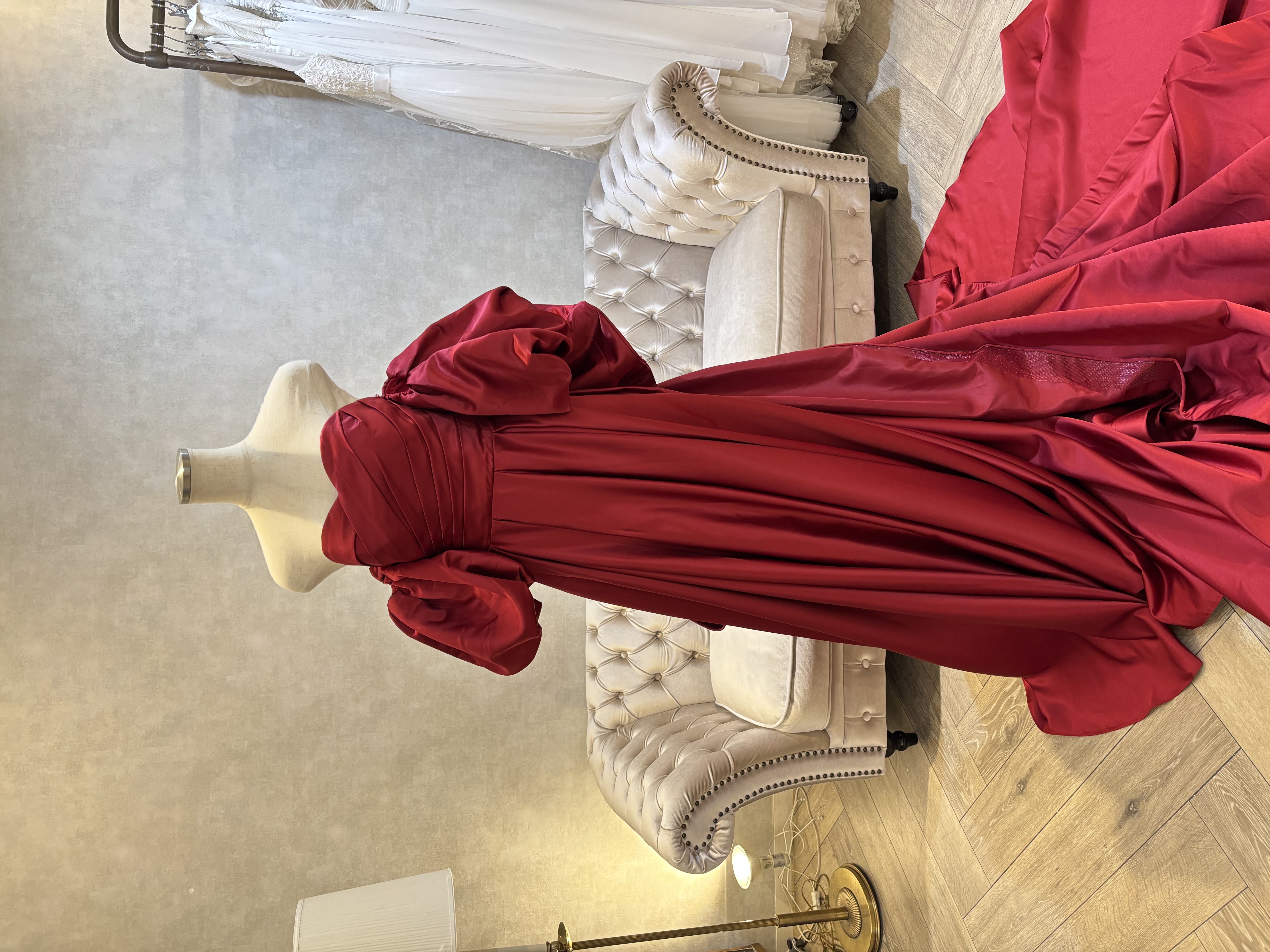 ディープレッドサテン (パフスリーブ・リボントレーン付属) 標準9〜13号