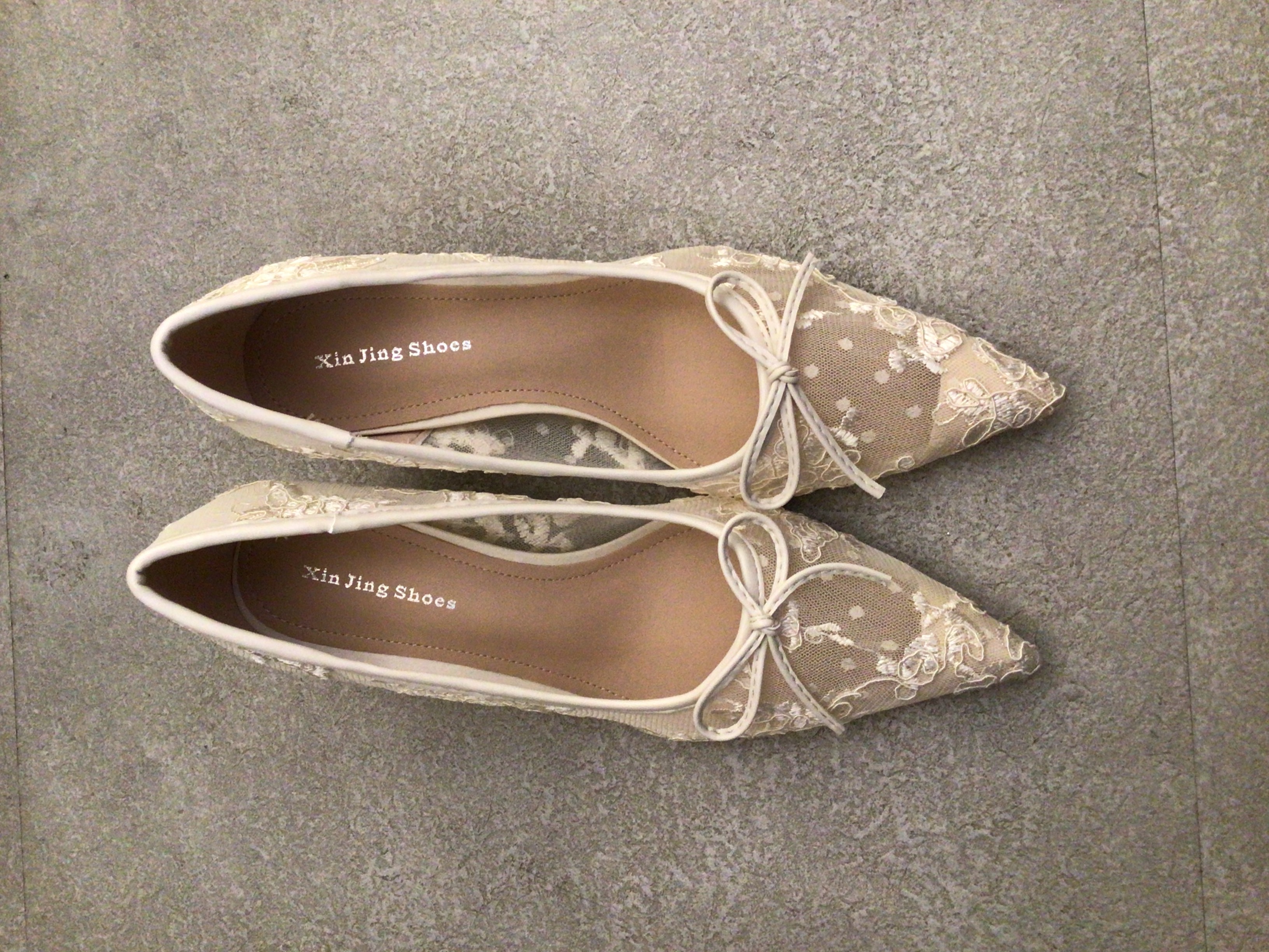 【パンプス】白レースリボンモチーフ付き 36  6cmヒール