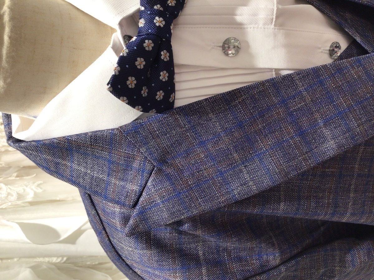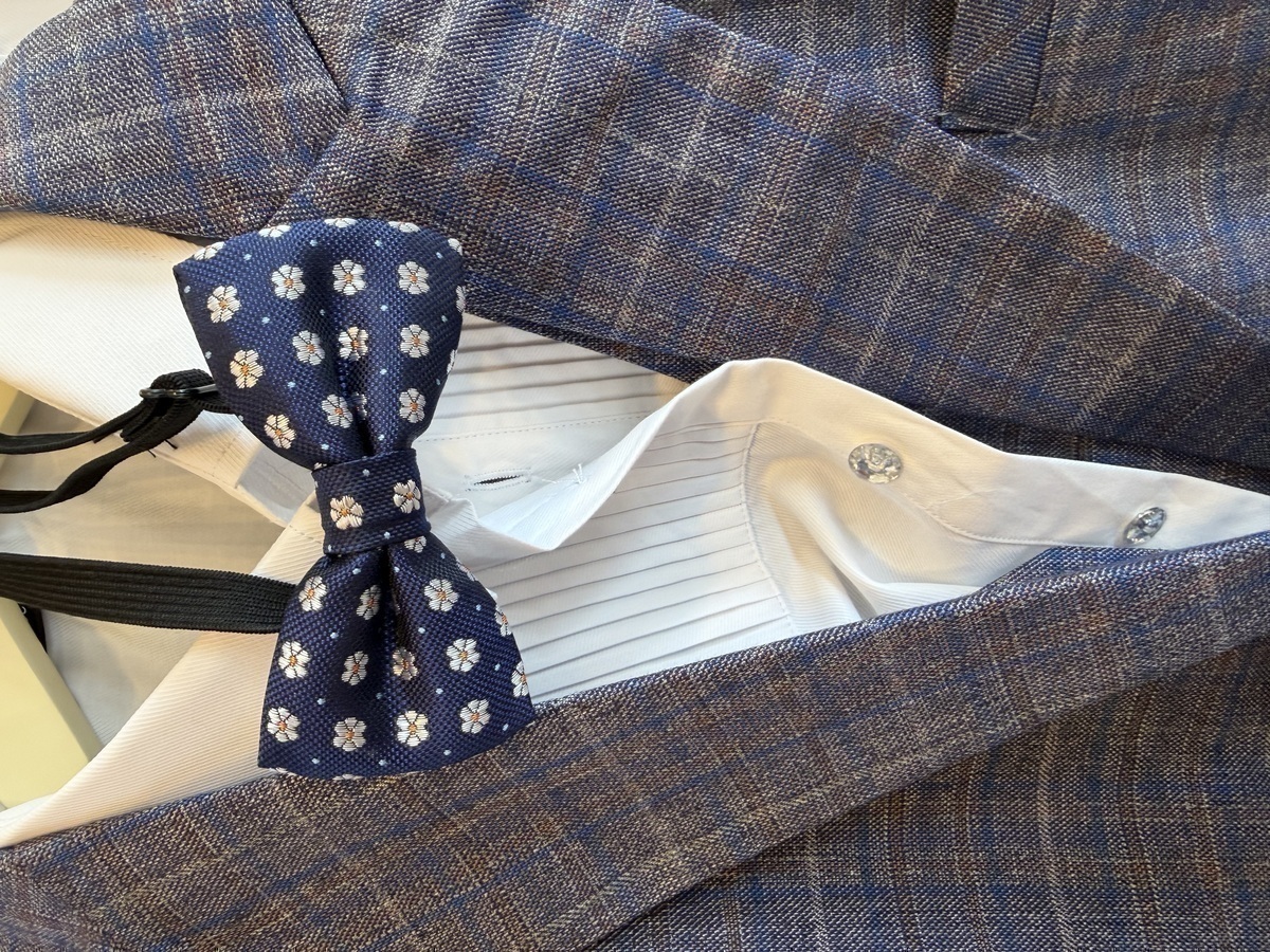 【キッズタキシード】グレー×ブルーチェック 160cm 蝶ネクタイ付き