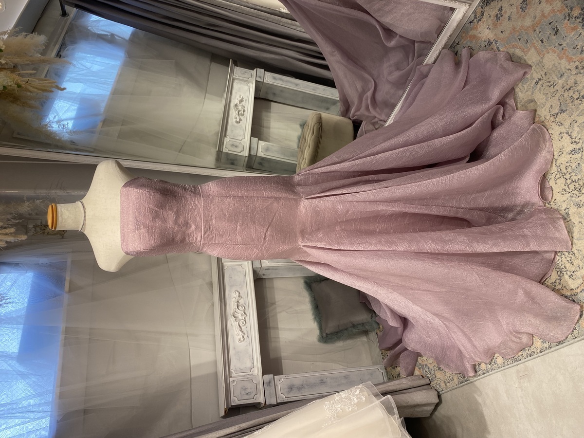 【カラードレス】オーガンジーライラックマーメイドドレス オフショルダー取り外し可能 9号/M