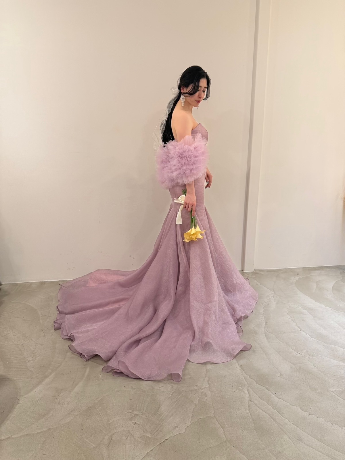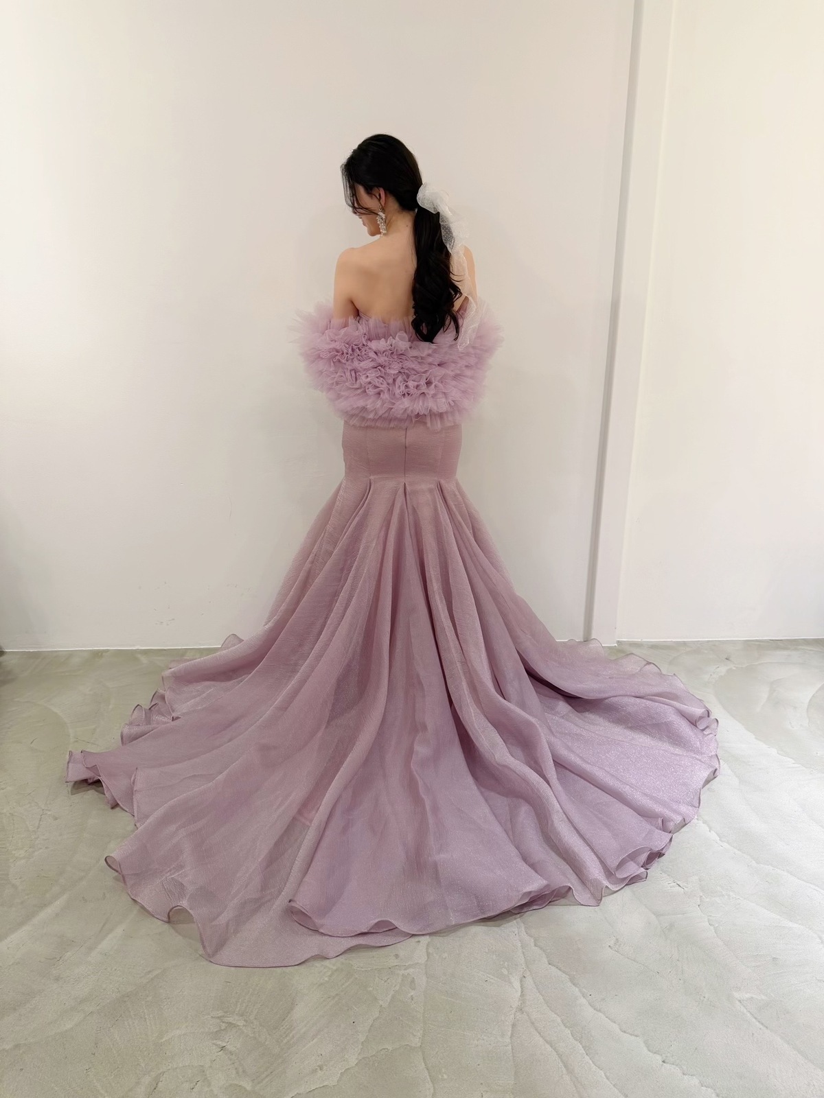 ライラックカラーマーメイドドレス オフショルダー取り外し可能 お色直しや二次会に!