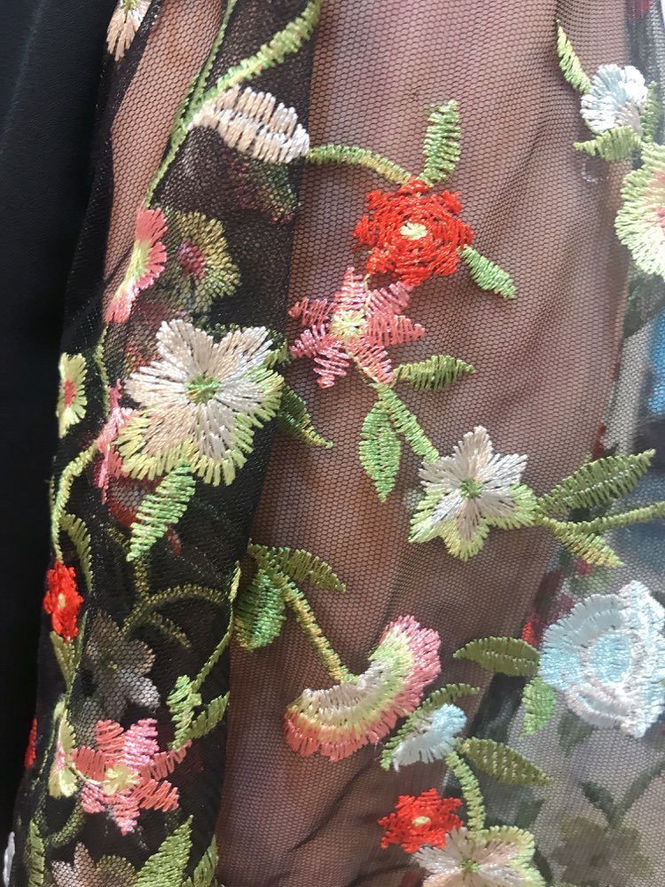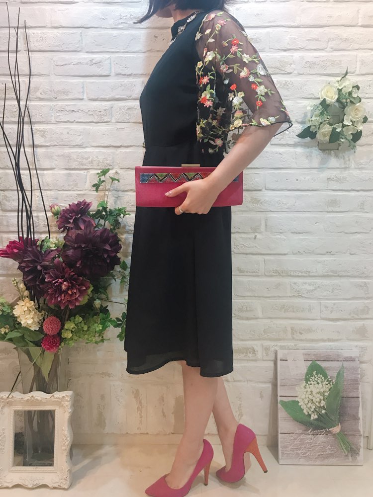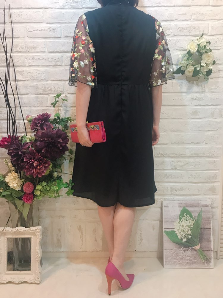 ブラック袖ありドレス。袖の部分に花柄刺繍がありとても可愛いドレス。