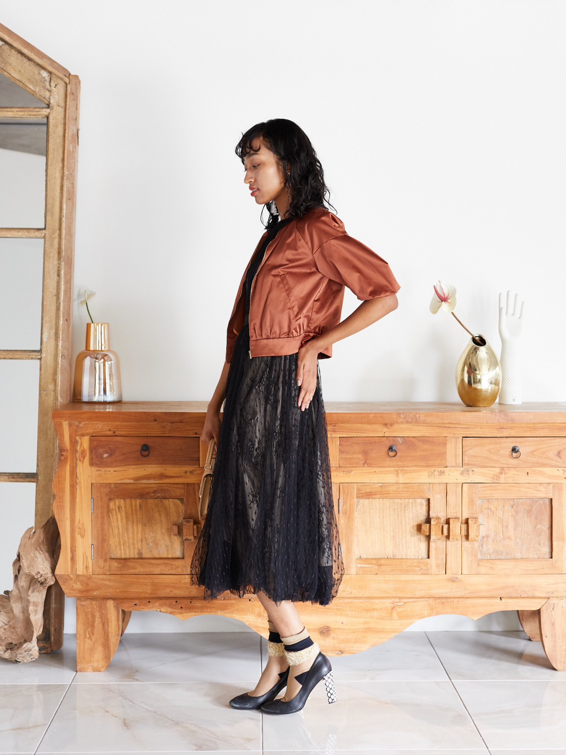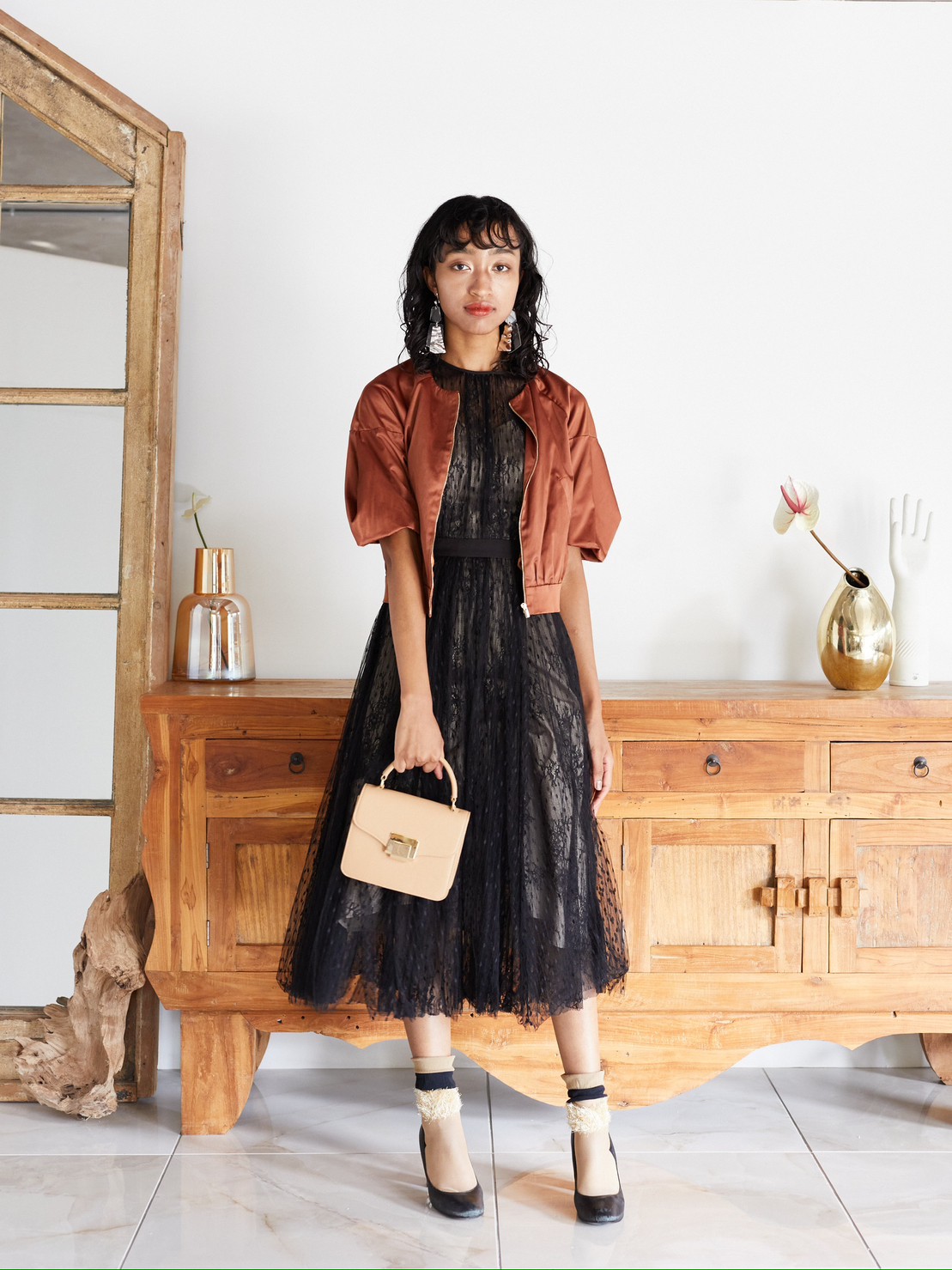 ブラックの丈長めドレス。総レースがとってもドレッシーな1着。ミモレ丈で繊細なレースがクラシカルな印象に。ブラックなので小物にカラーを入れても可愛いです♪丈が長めなので幅広い年齢層の方におすすめな1着です♪