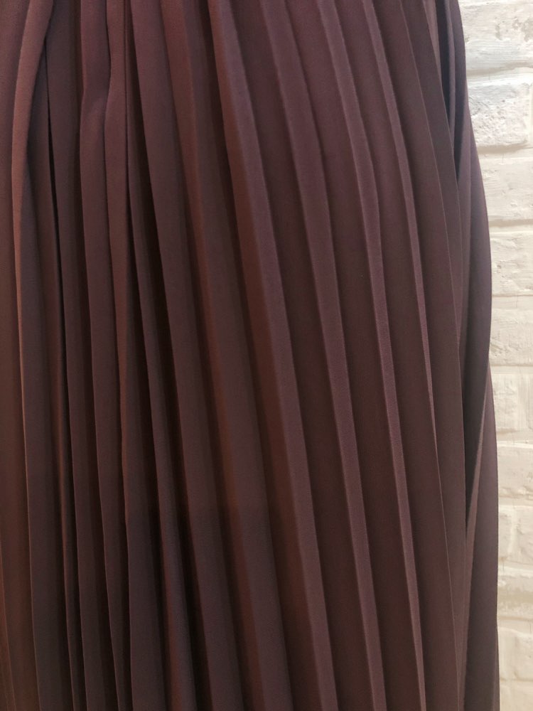 【パーティドレス】ブラック×バーガンディ袖ありミモレ丈プリーツドレス