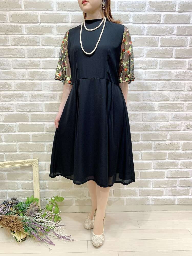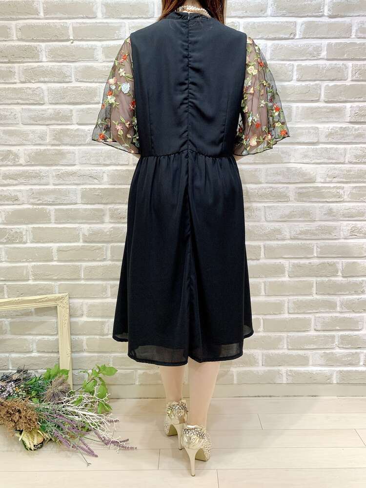 【ゲストドレス】ブラック フラワースリーブ L〜