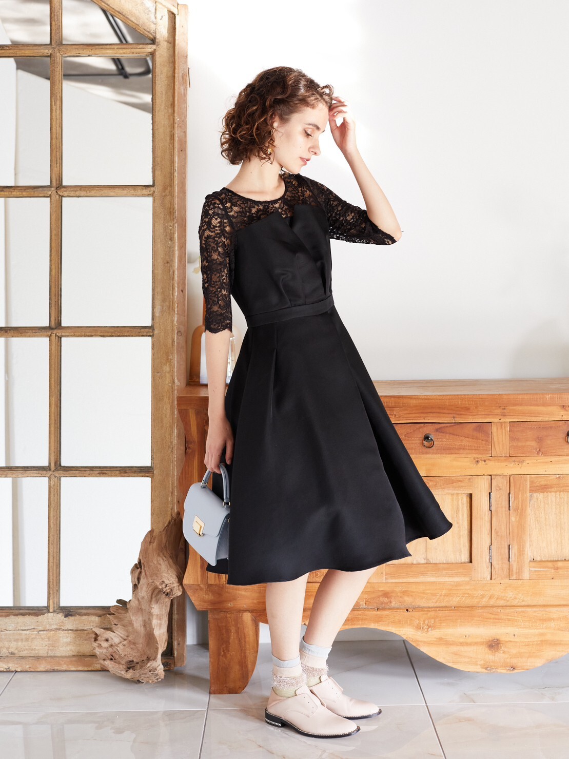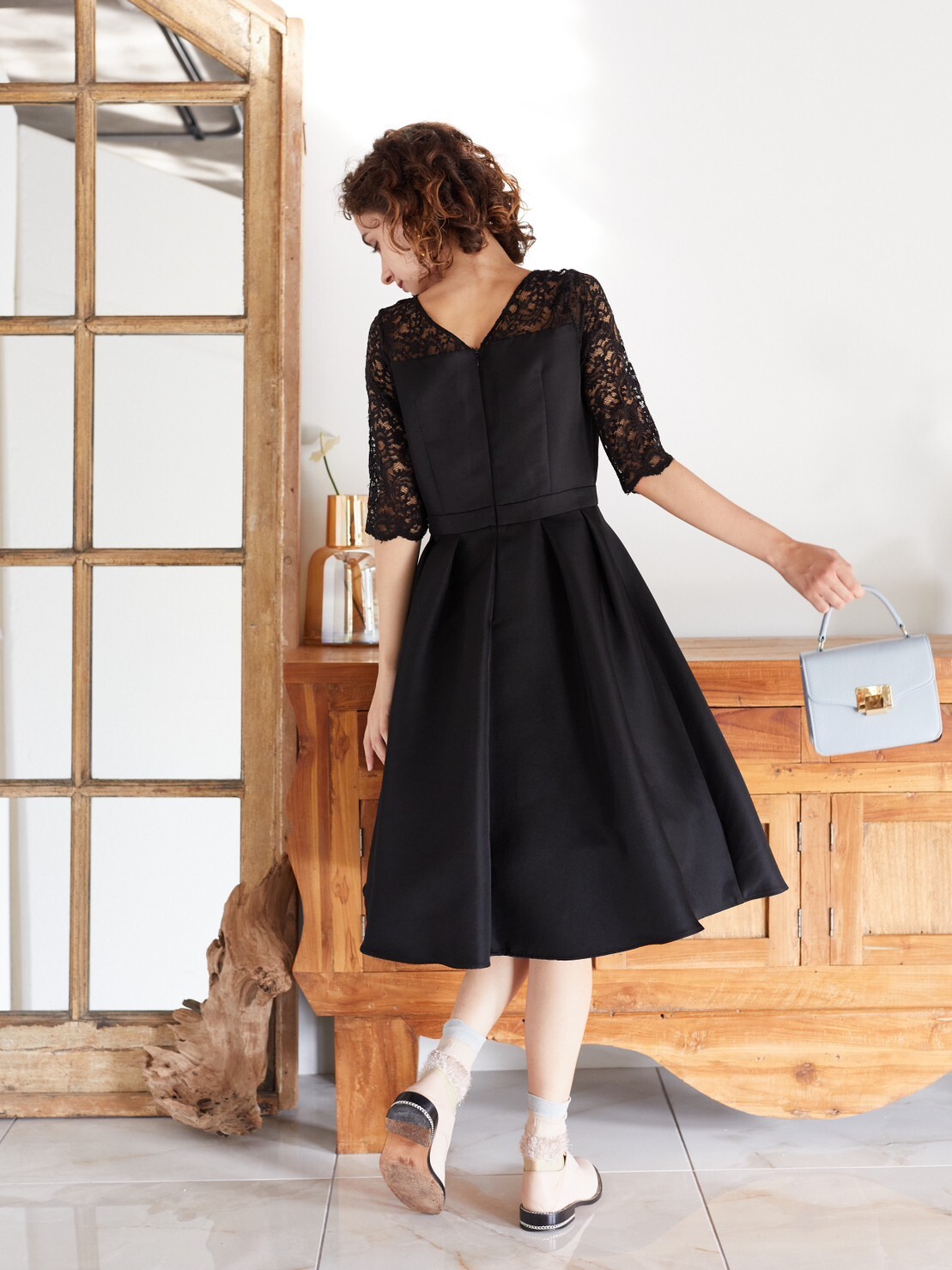 結婚式お呼ばれドレス オケージョン ハリ感 ボリュームのあるフレアスカートがクラシックで華やかなブラックドレス