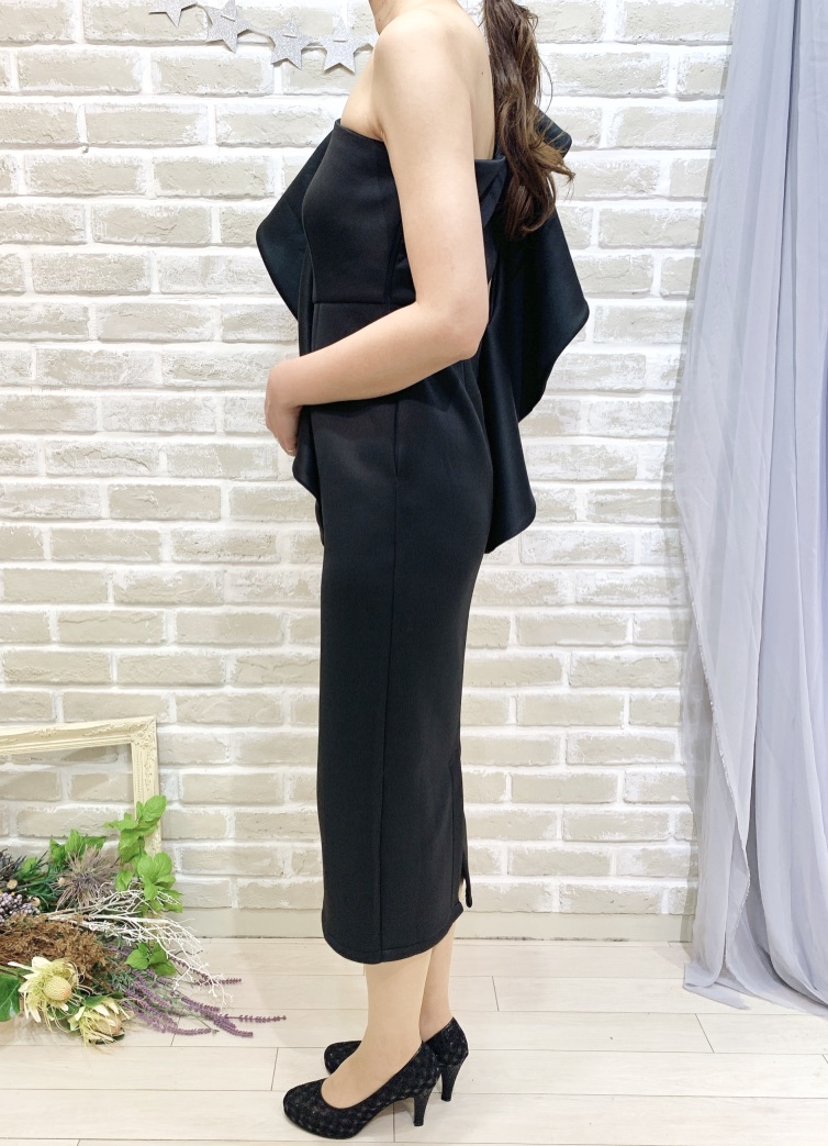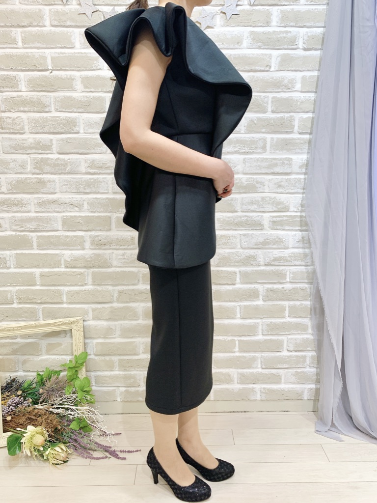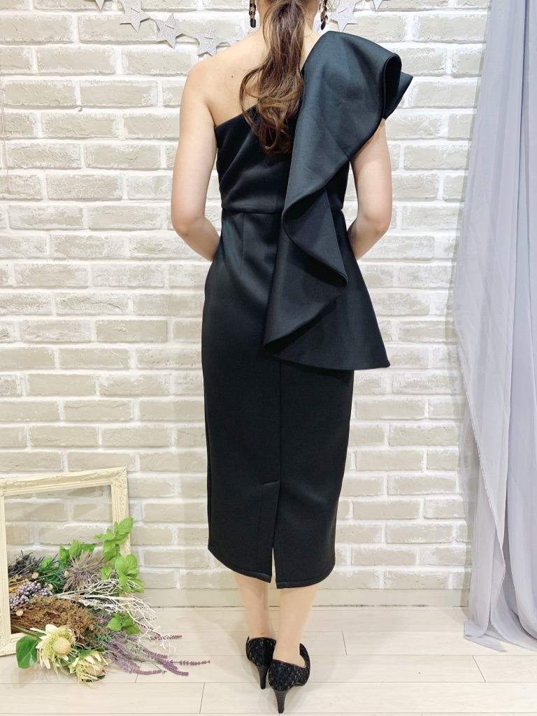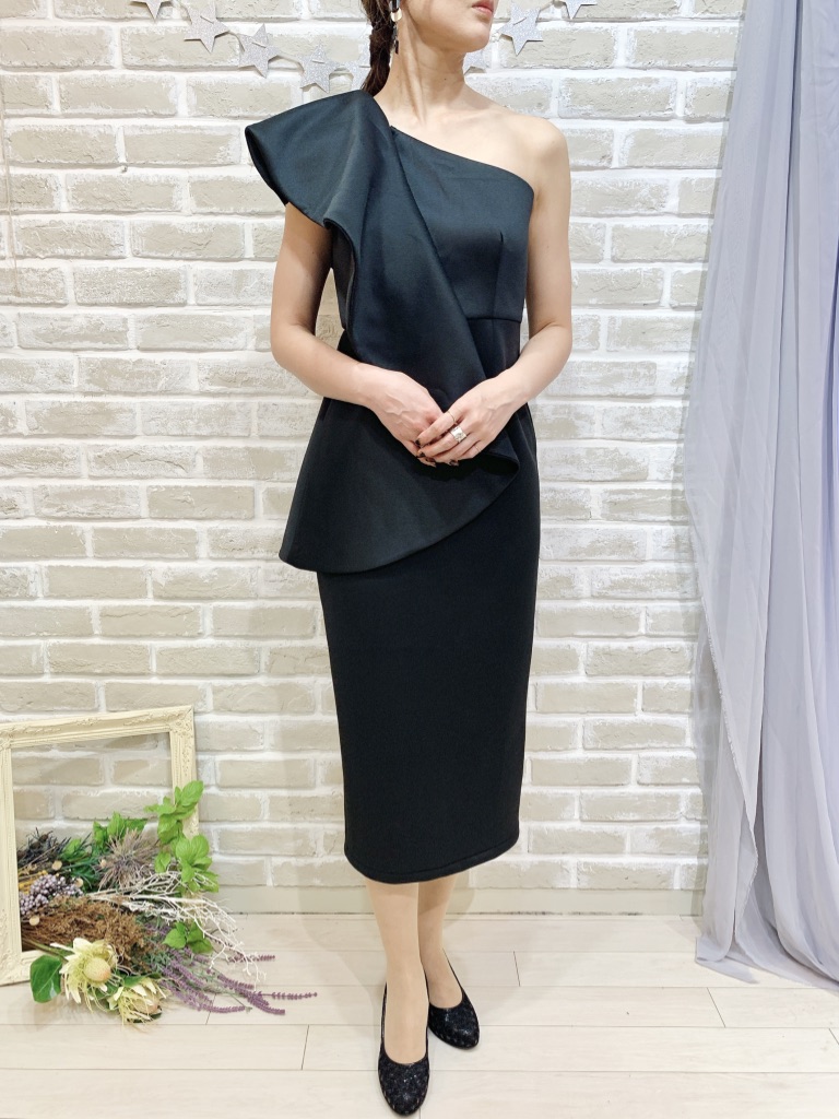 スタイリッシュでモダンなスタイルを演出してくれるワンショルダーデザインドレス。大きなラッフルのワンショルダーに潔いシンプルなブラック、ボディラインを生かすカーヴィーなシルエットで、大人の雰囲気を最上級に格上げしてくれるとっておきのドレスです。さらに、ここ数年チラホラ見るボンディング生地は、バッチリトレンド感も備えたスタイルに。カジュアルなパーティードレスや、羽織を羽織って結婚式のゲストドレスにもおすすめ。年齢層も幅広く、20〜50代のクールで大人の雰囲気を活かしたスタイルに挑戦してみたい方にぜひ。ワンショルダードレスはドレスサイズに関わらず、バスト・身幅のサイズによって胸元の開き具合が変わります。ドレスサイズをご参照ください。