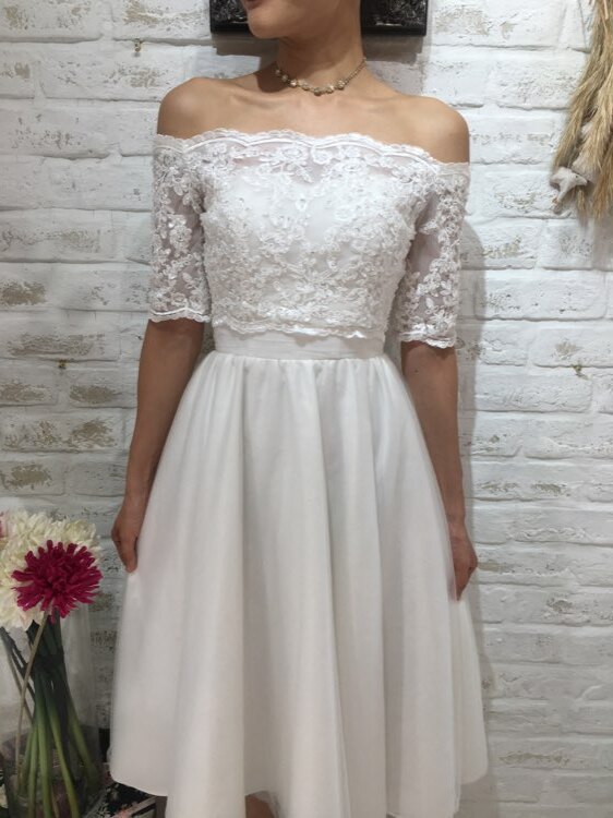 花嫁様におすすめ ベアドレスに羽織るだけで袖有りドレスに ホワイトレースボレロ