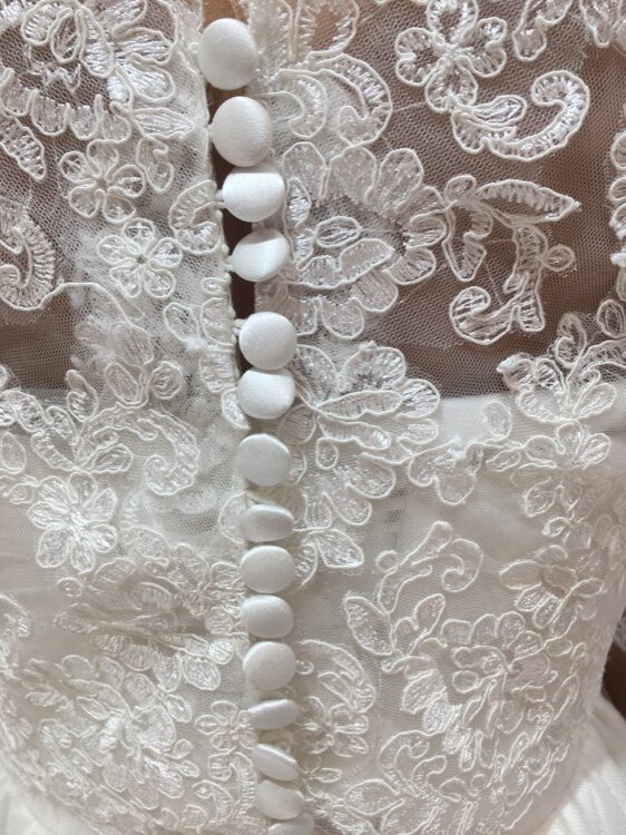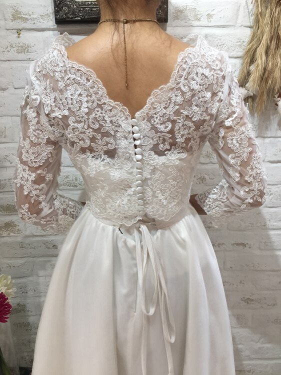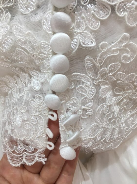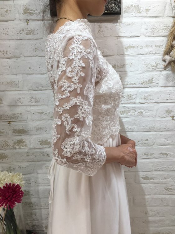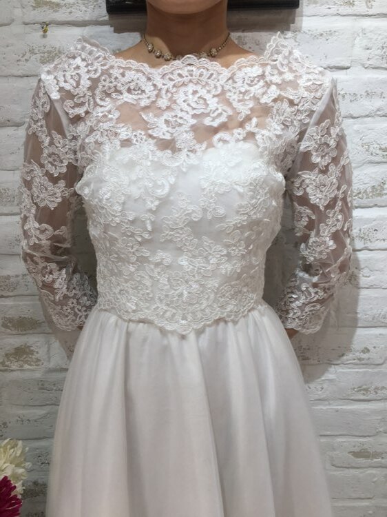 7分袖ホワイトレース後ろボタンウェディングボレロ