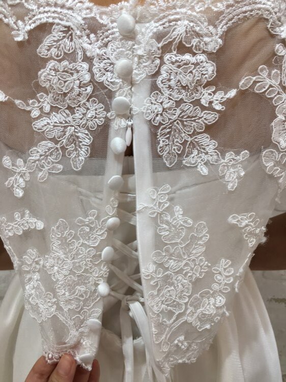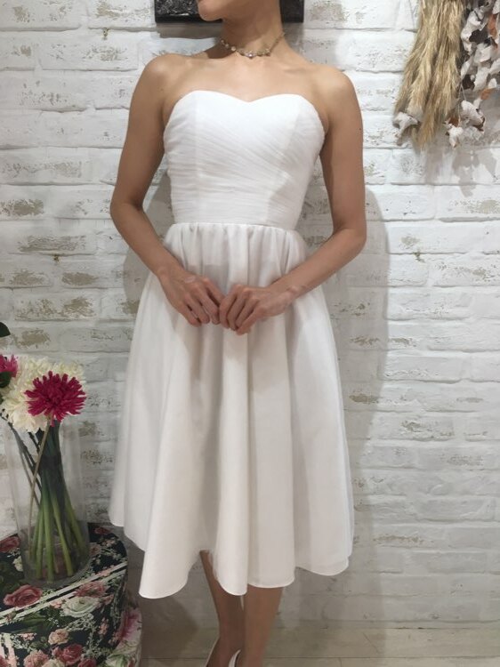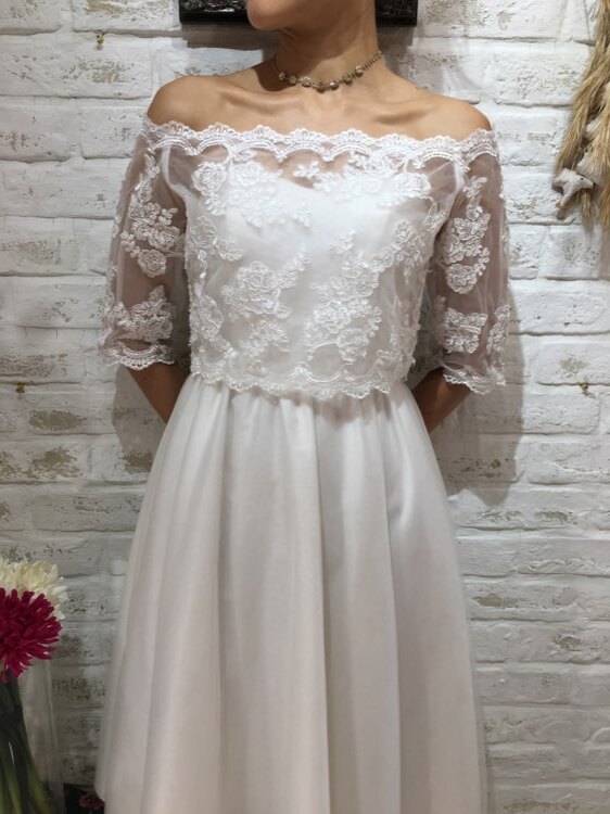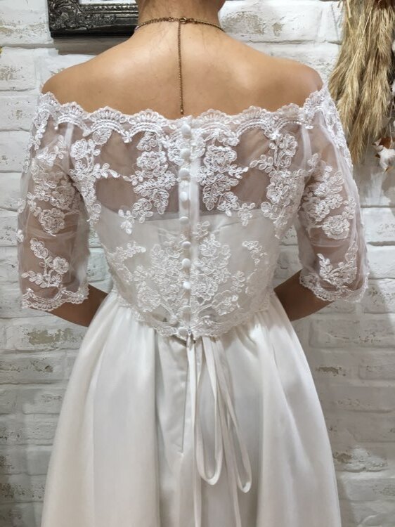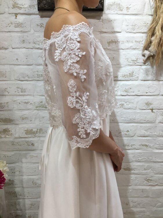 花嫁様におすすめ ベアドレスに羽織るだけで袖有りドレスに ホワイトレースボレロ