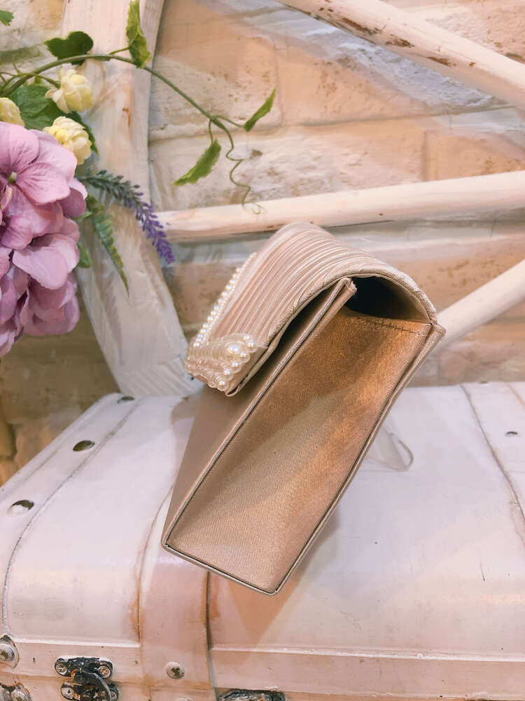 ロマンティック系 パールが上品なパーティー向きクラッチバッグ