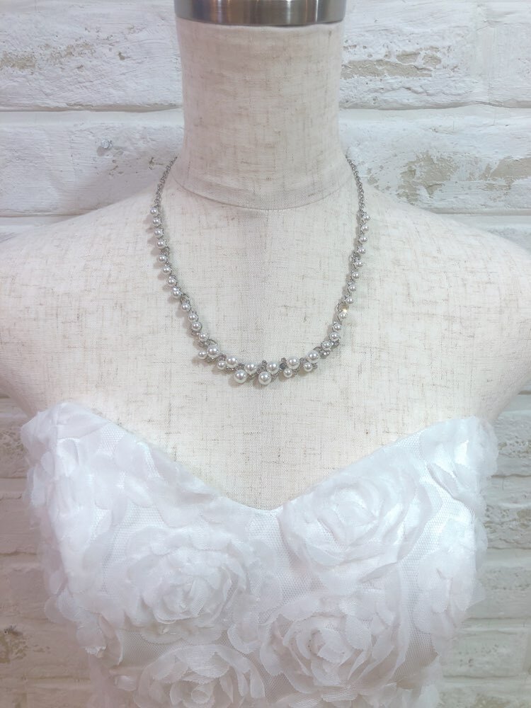 シルバーのパール付細身ネックレス。どんなドレスにも相性が良く、様々なシーンでお使い頂けます。7cmのアジャスター付。