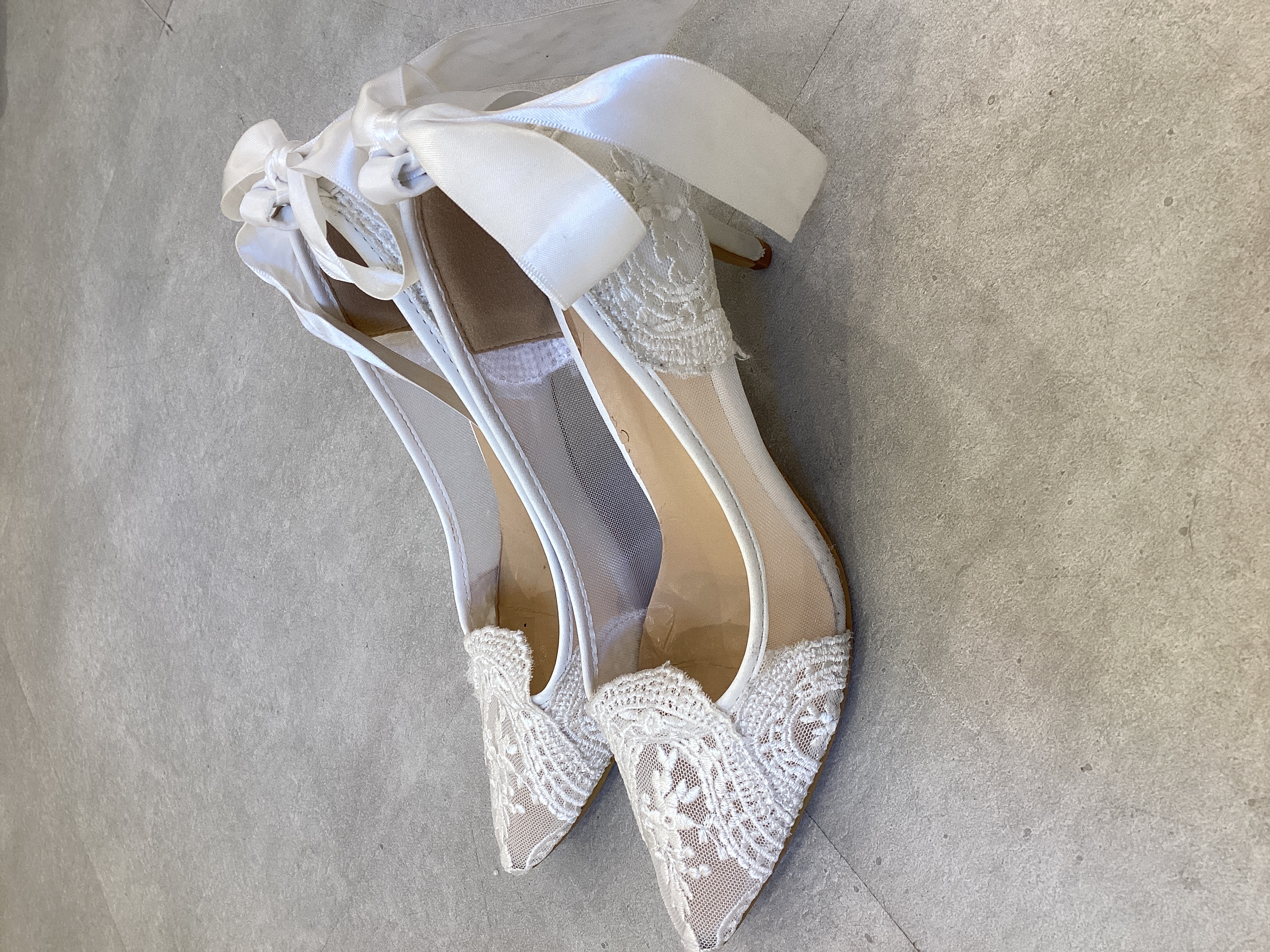 【パンプス】ホワイトレースリボン付パンプス 24cm ヒール7cm