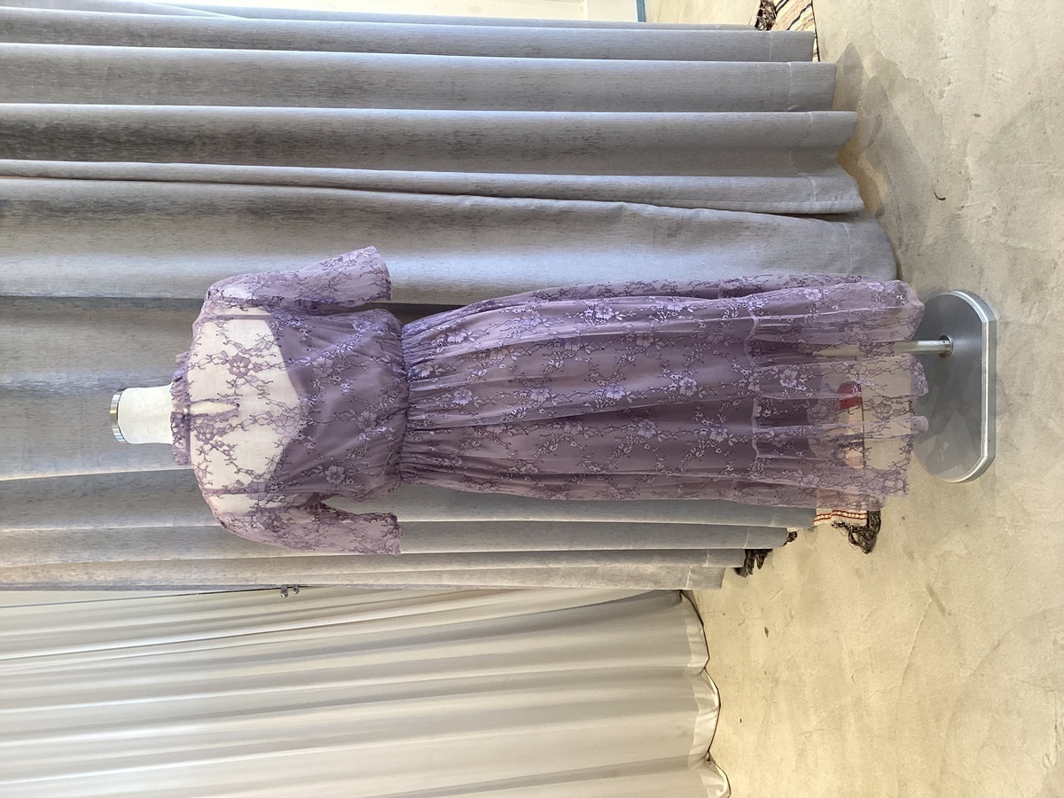パープルピンク 半袖 総レース ゲストドレス 同窓会ドレス レンタル 東京