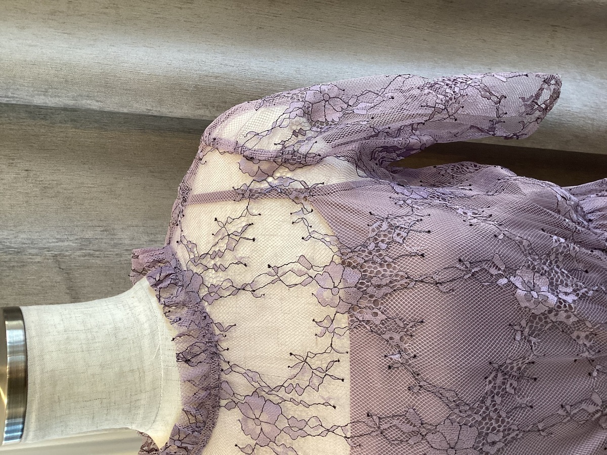 【ゲストドレス】モーヴピンク 総レース 五分丈スリーブ M
