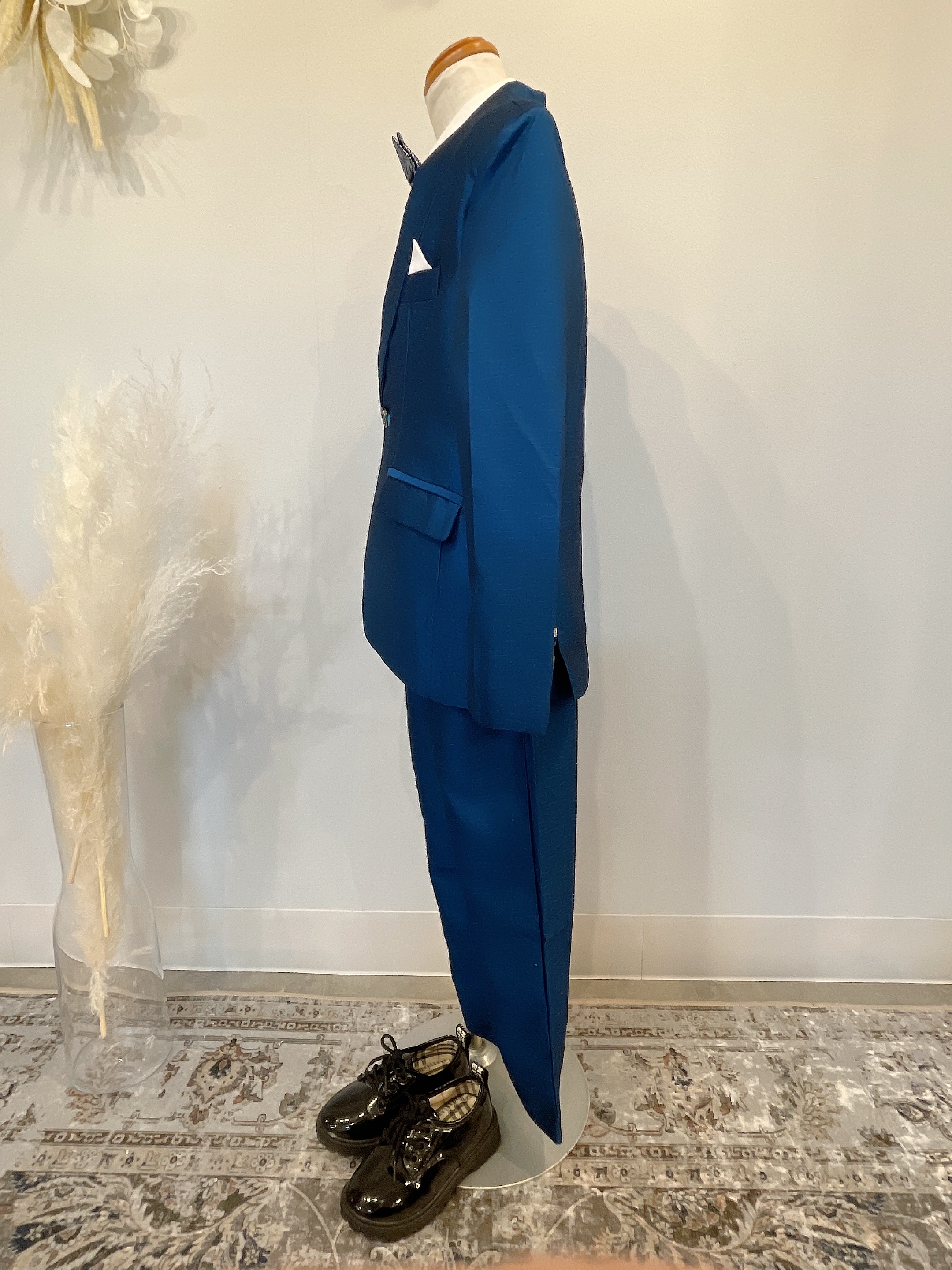 ネイビー光沢タキシード(ジャケット・パンツ・ベスト・タイ付)110cm