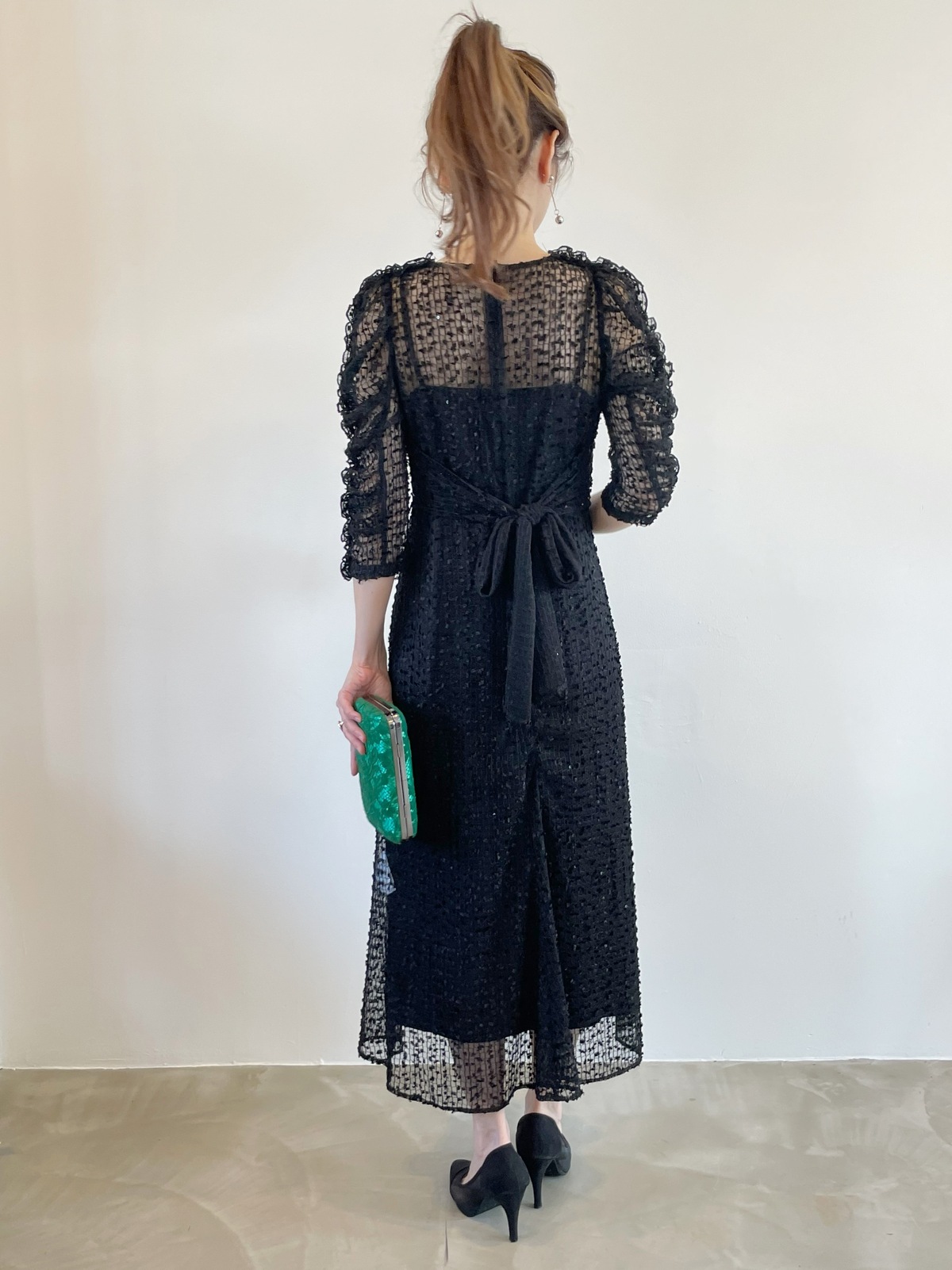 【ゲストドレス】ブラックスパンコール付き S CELFORD
