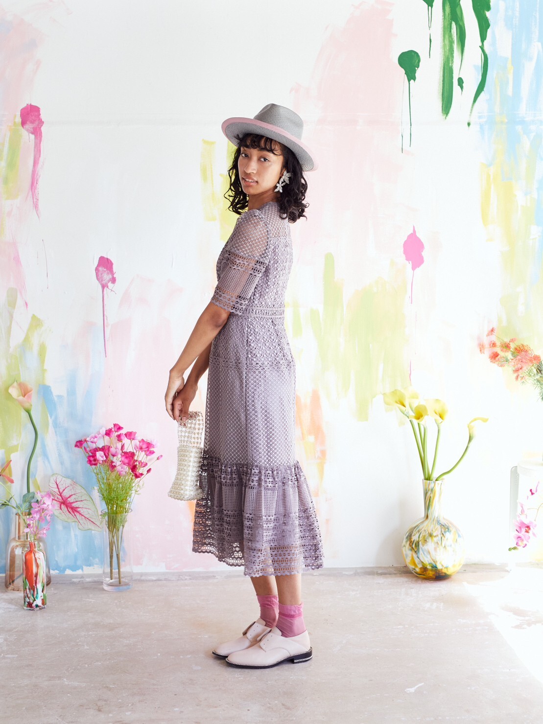 グレージュ パープル ゲストドレス レンタル 表参道