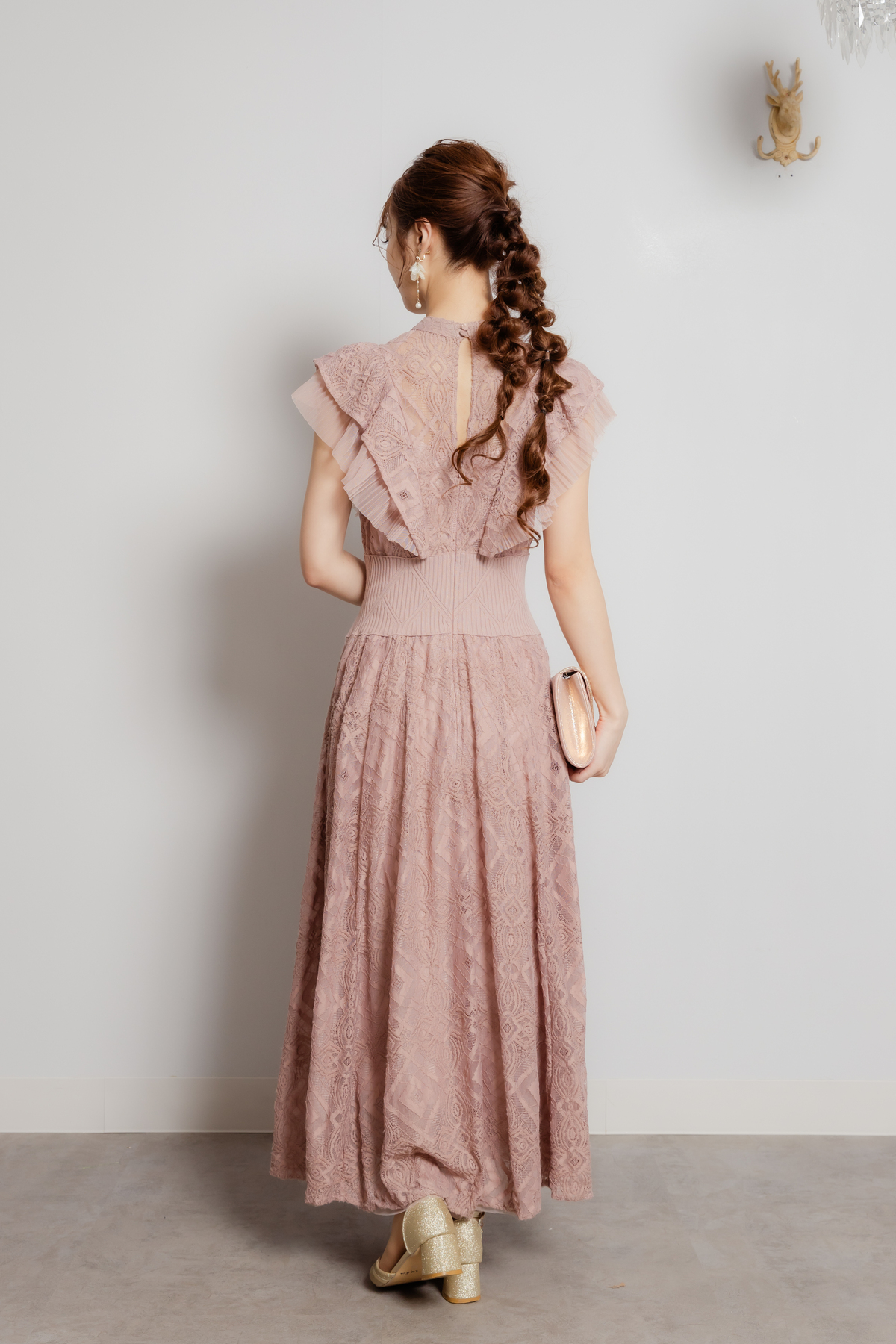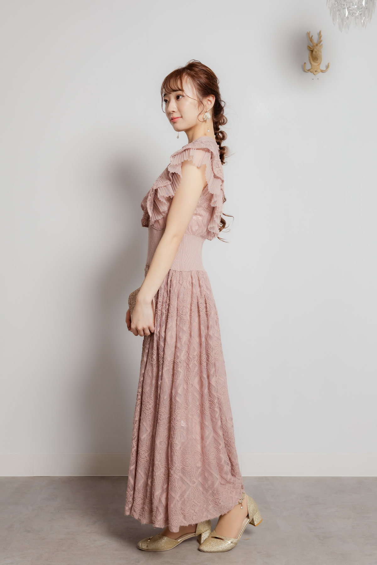 snidel ダスティピンク袖フリルウエストニットレースドレス S-M