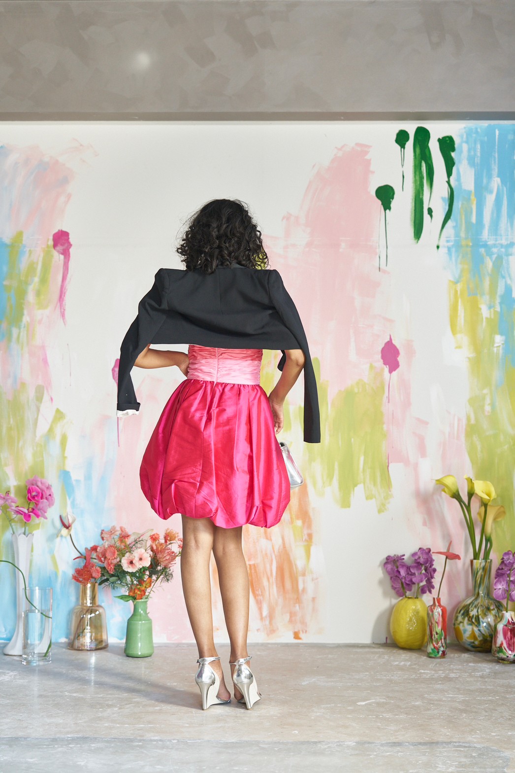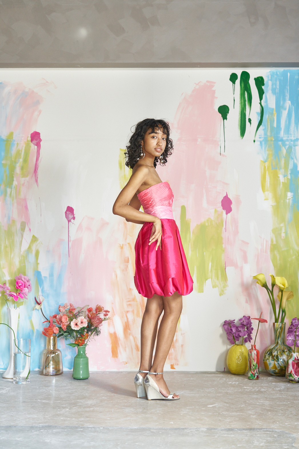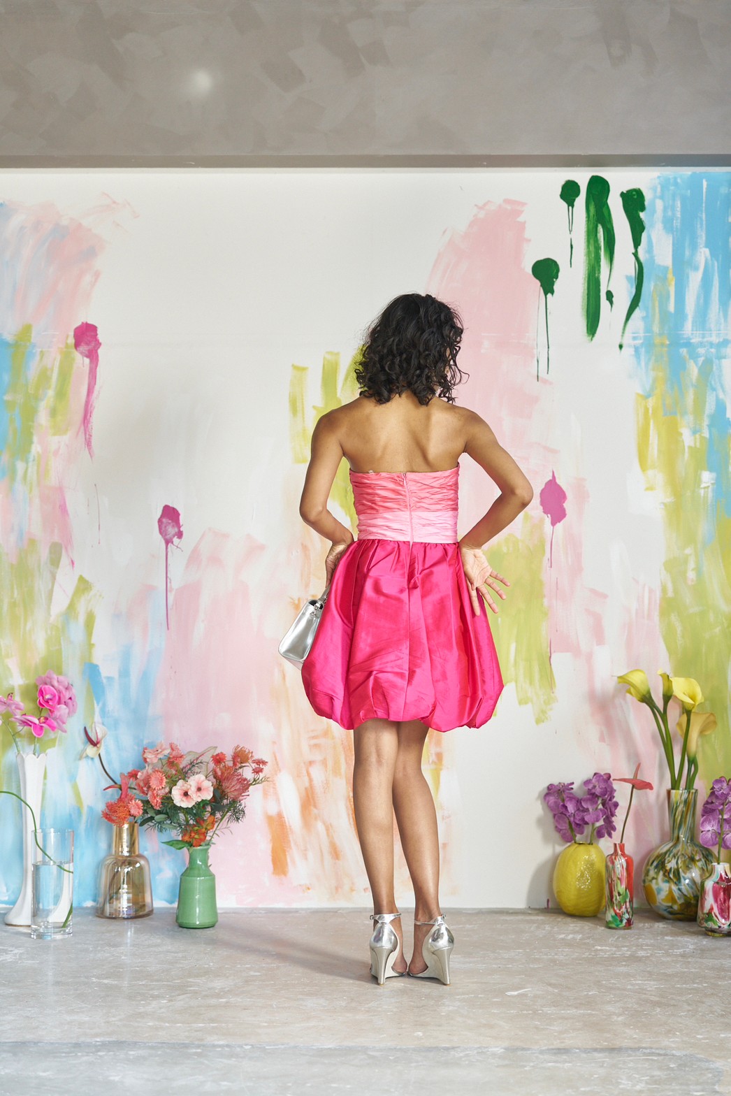【パーティードレス】ピンクグラデーションバルーンベアドレス