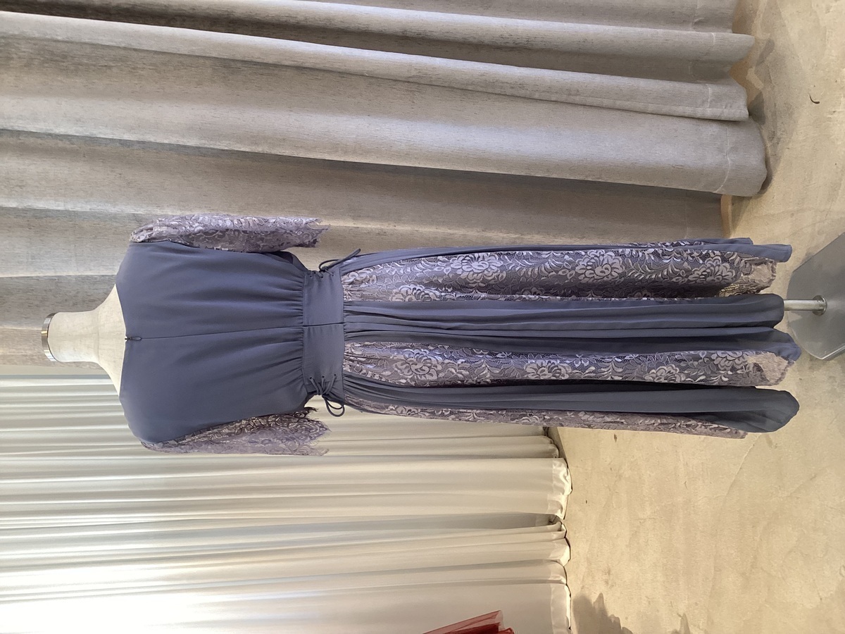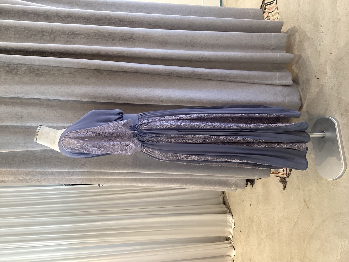 【ゲストドレス】ブルーグレー プリーツレース L