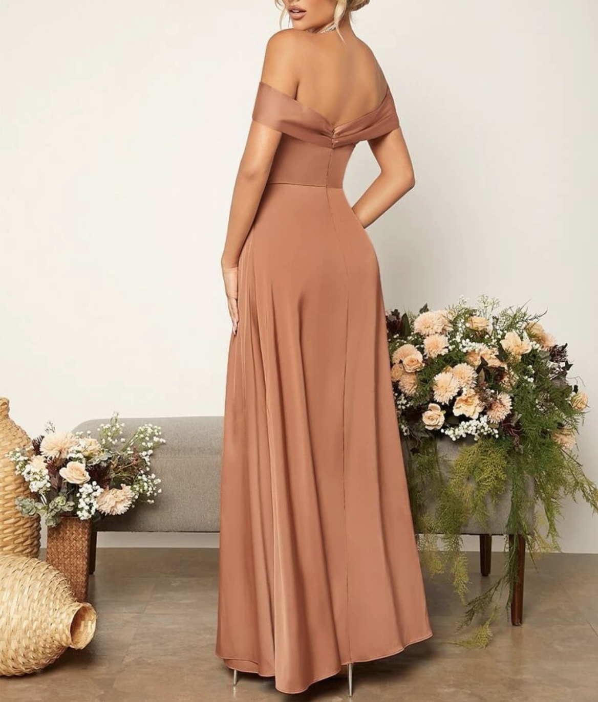 【パーティードレス】オフショル テラコッタサテン M 9号