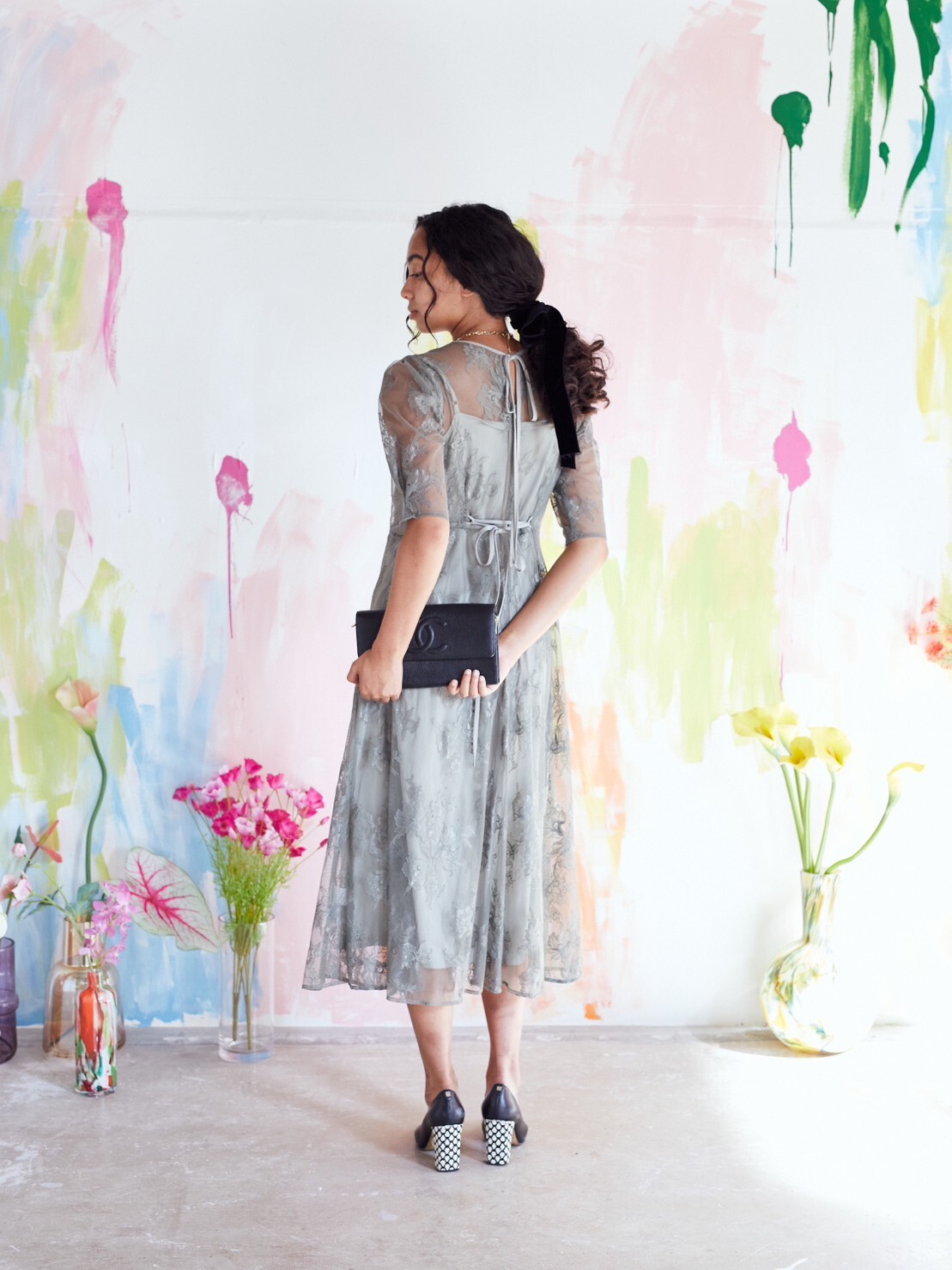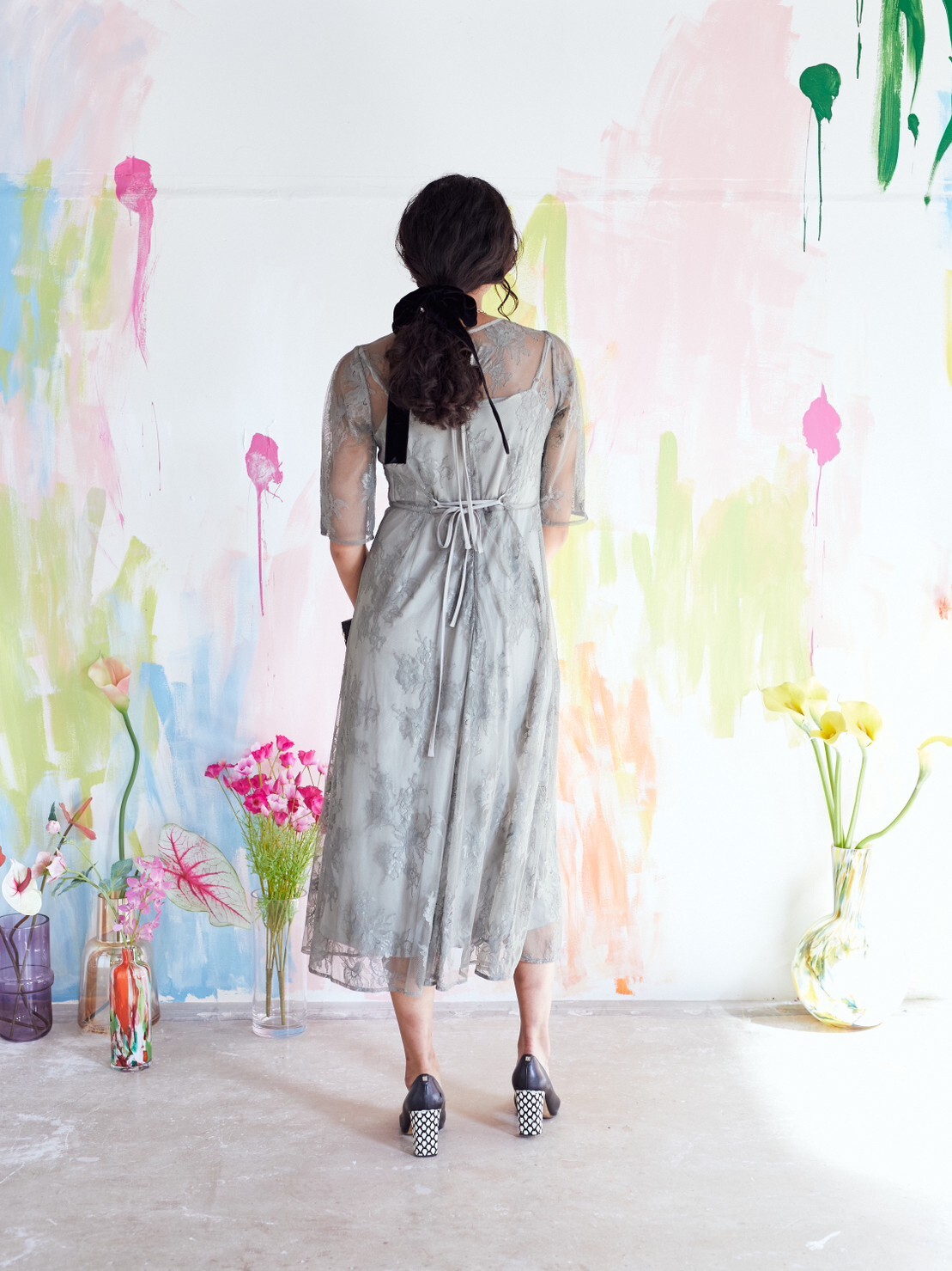 【ゲストドレス】モスグリーン バックダブルリボン L