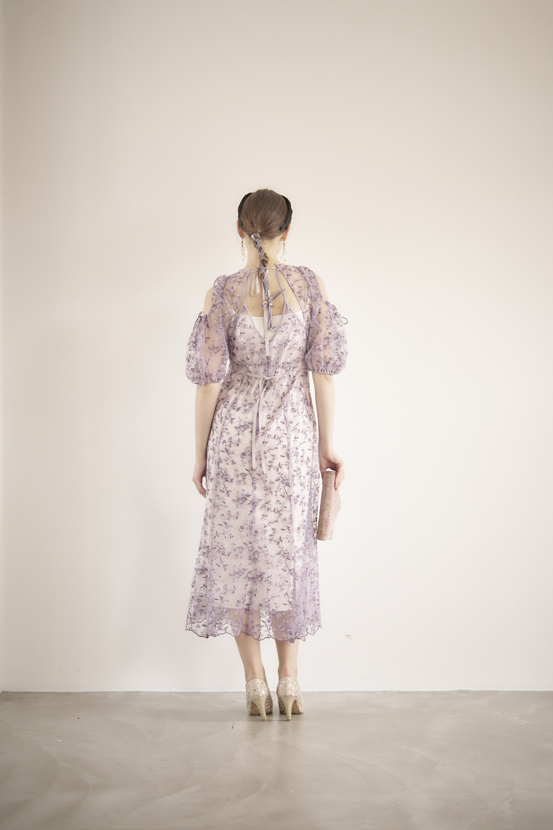 【ゲストドレス】LILYBROWN ラベンダーフラワーシースルー sizeF M