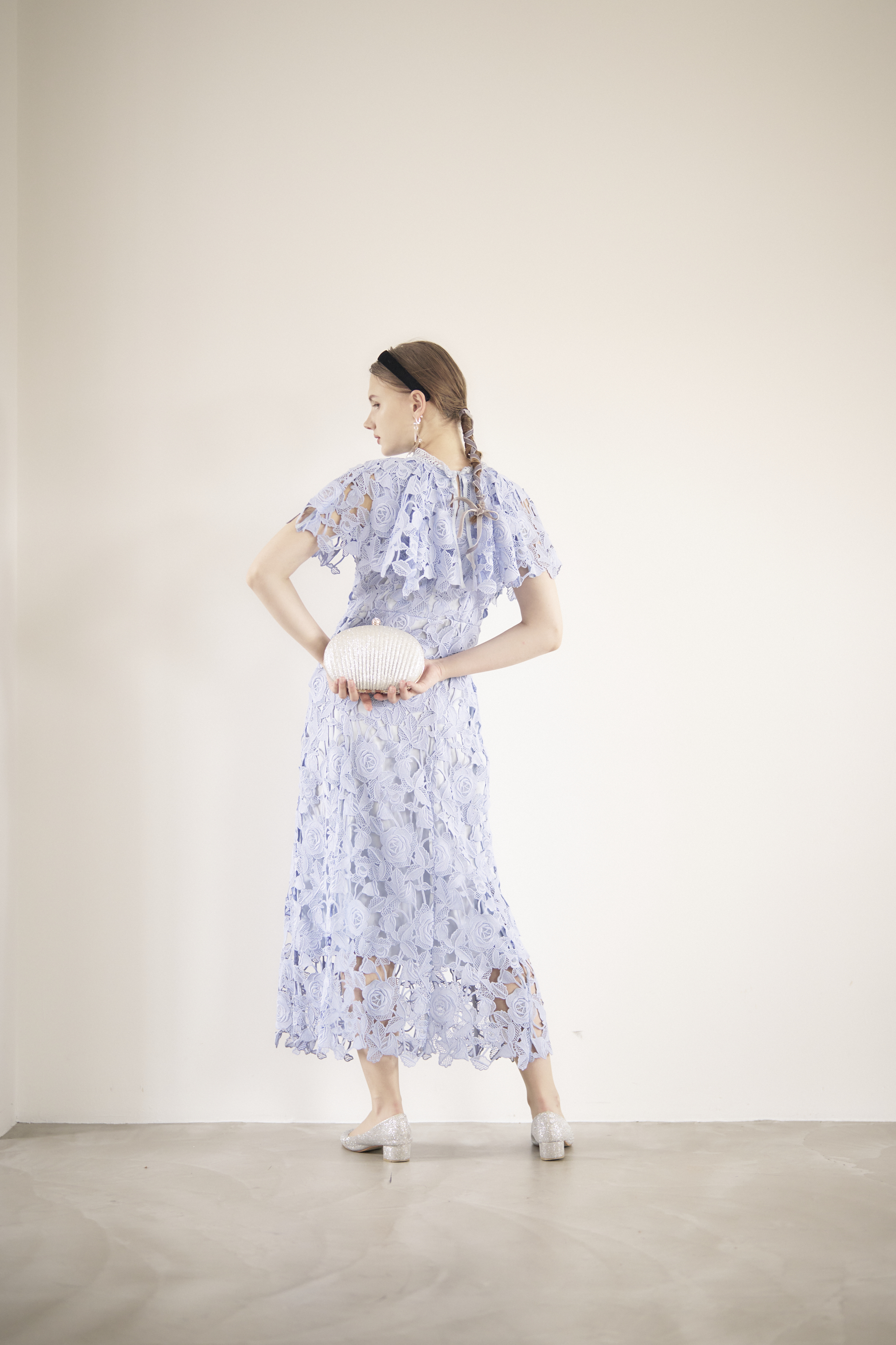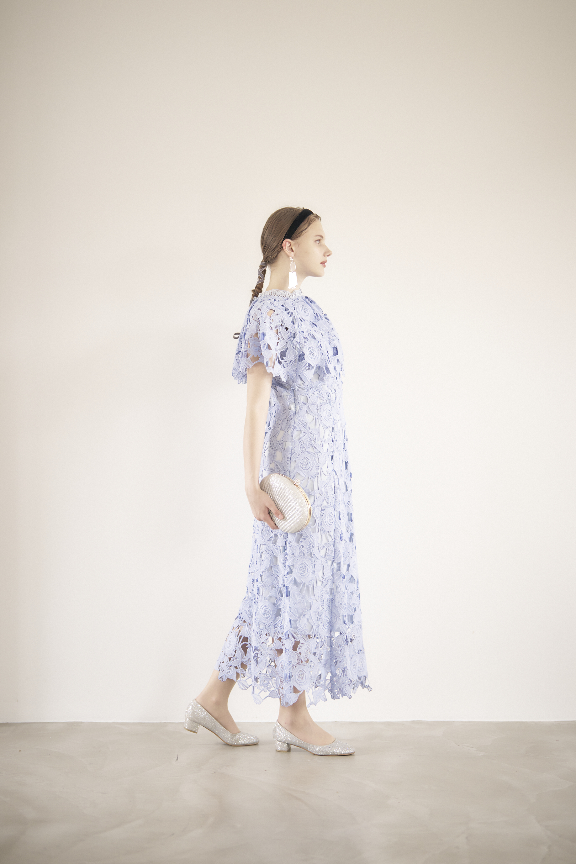 ライトブルー ローズレース 総レース レンタル ゲストドレス