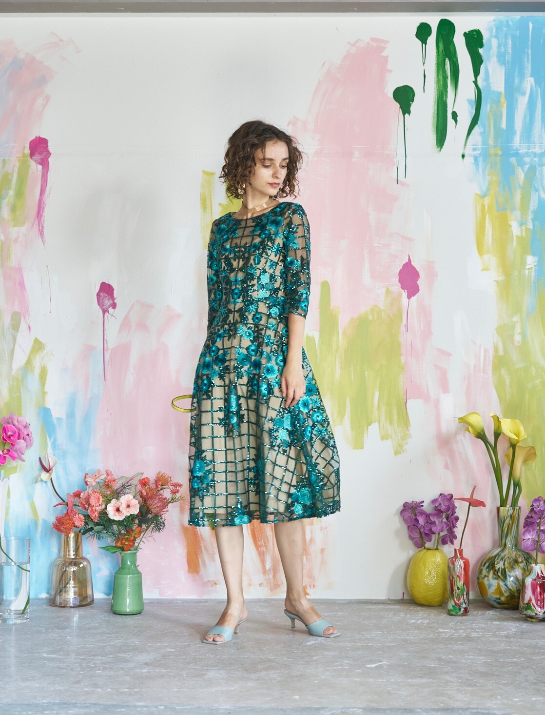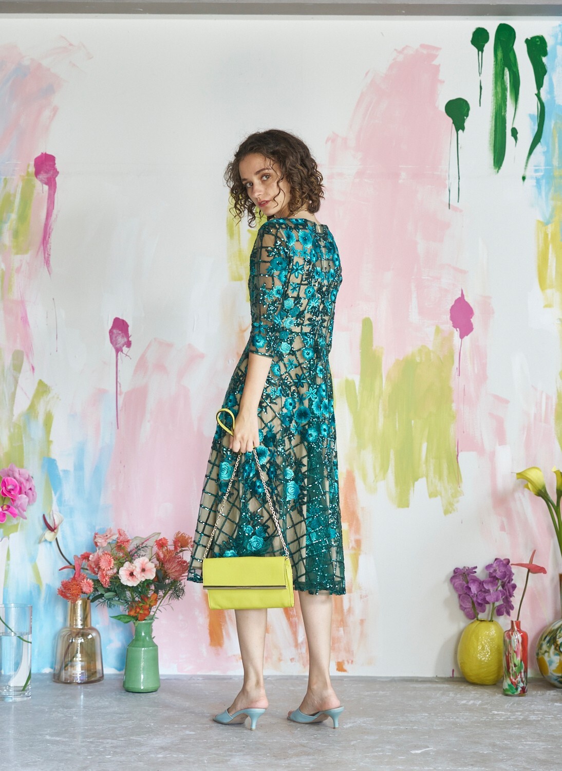 スパンコール グリーン パーティードレス