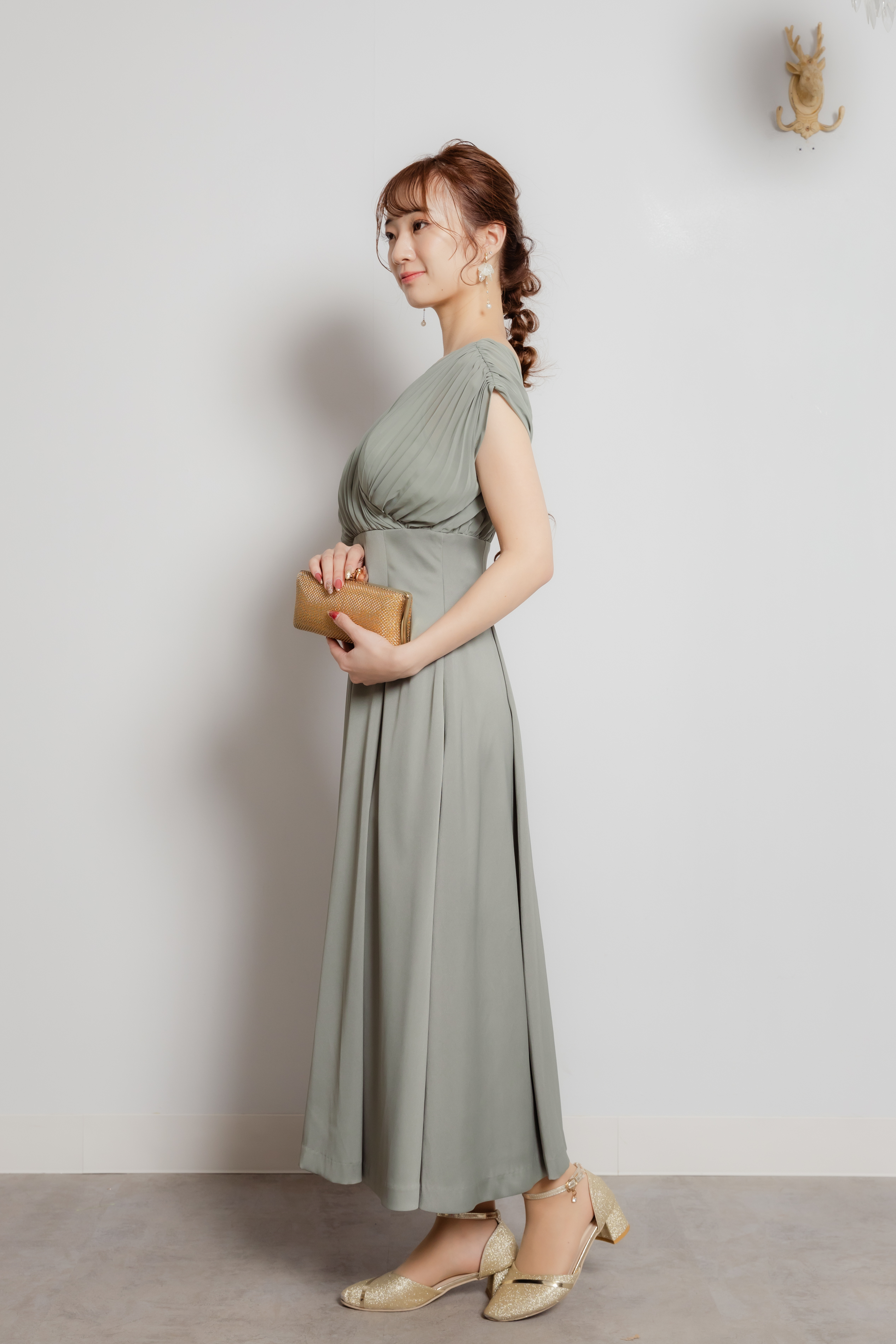 シアーな素材にプリーツ加工を施したカシュクールドレス。