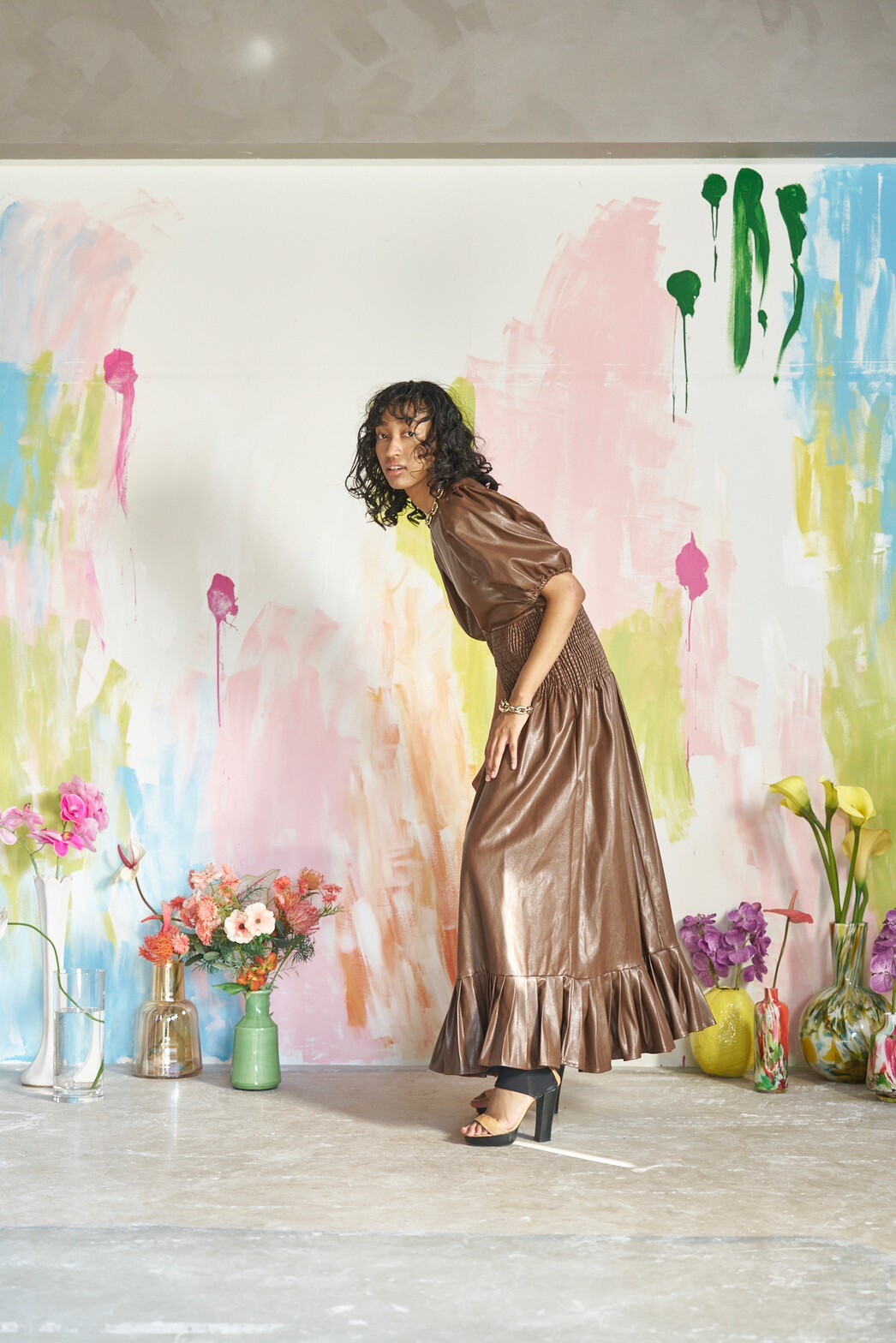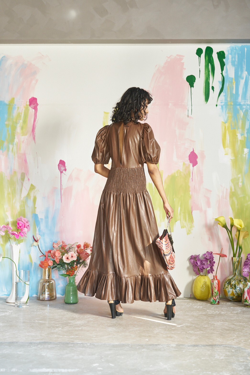 【パーティドレス】レザーブラウン XS