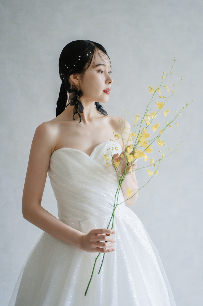 挙式、披露宴、二次会、ウェディングパーティー、フォトウェディング、あらゆるシーンで大活躍。立ち姿も座り姿も美しく魅せ、着映えするデザインなので、どの会場でも華やかに存在感をアピールできます。